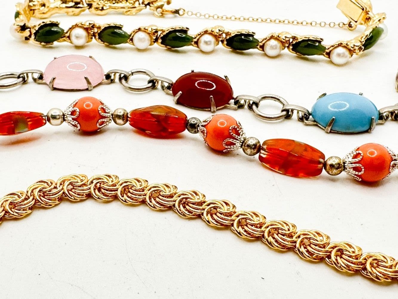 ASSORTED BRACELETS, COLORFUL AND STONES
