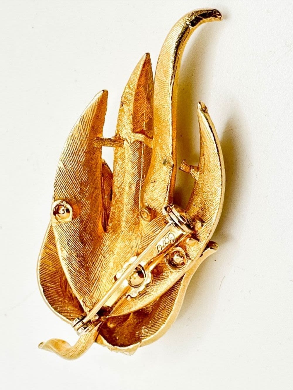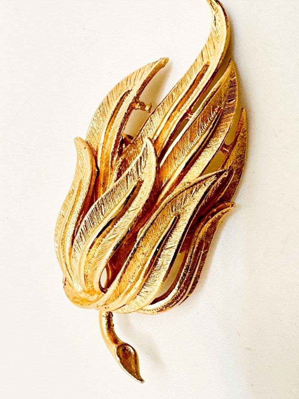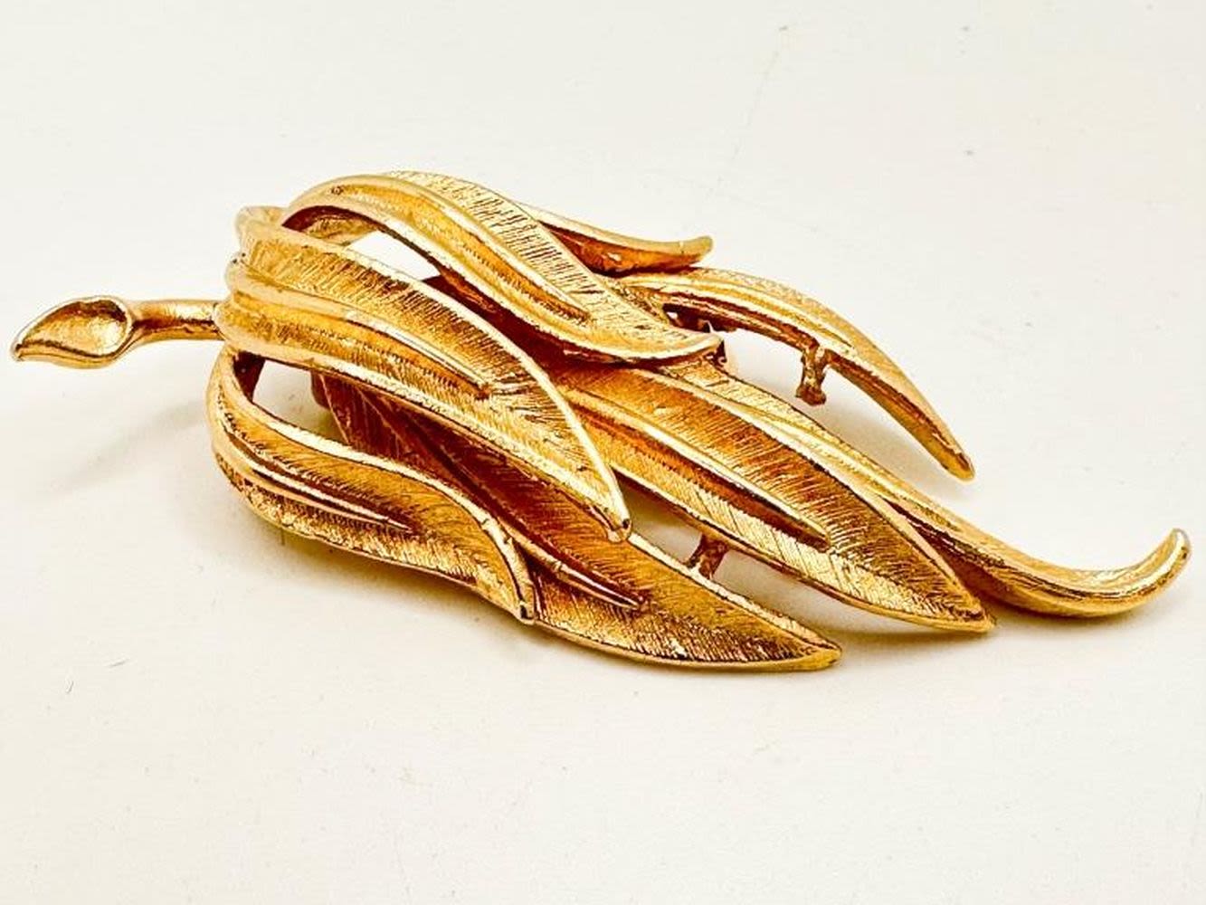 CORO SIGNED LEAF BROOCH IN GOLD TONE