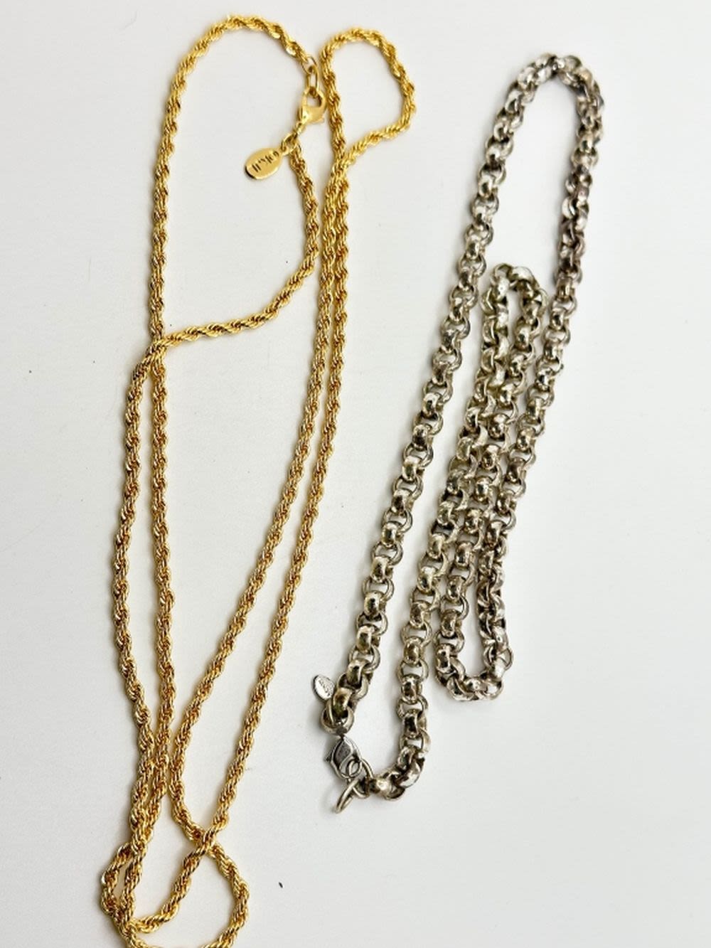 KENNETH JAY LANE DESIGNER VINTAGE SIGNED GOLD TONE NECKLACE AND MONET SIGNED SILTER TONE NECKLACE