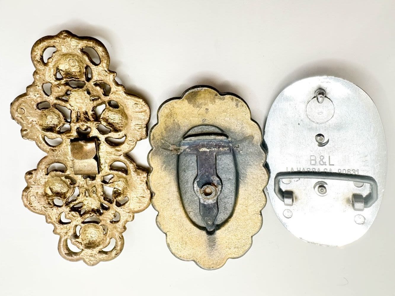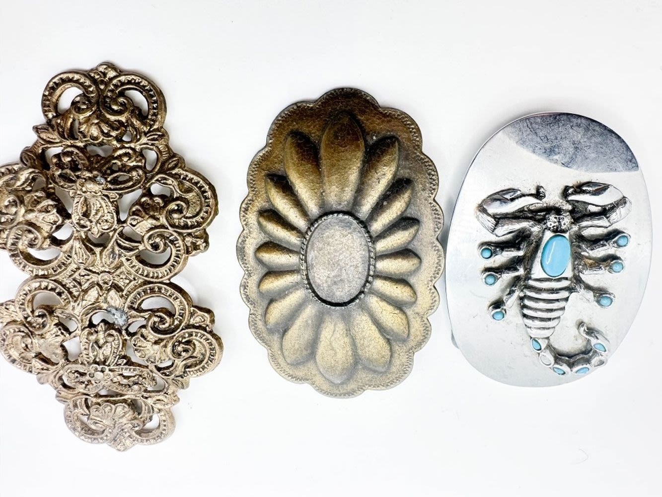 SCORPION BELT BUCKLE, MISSING STONE, LARGE SCROLL CLIP , OTHER HAS TARNISH