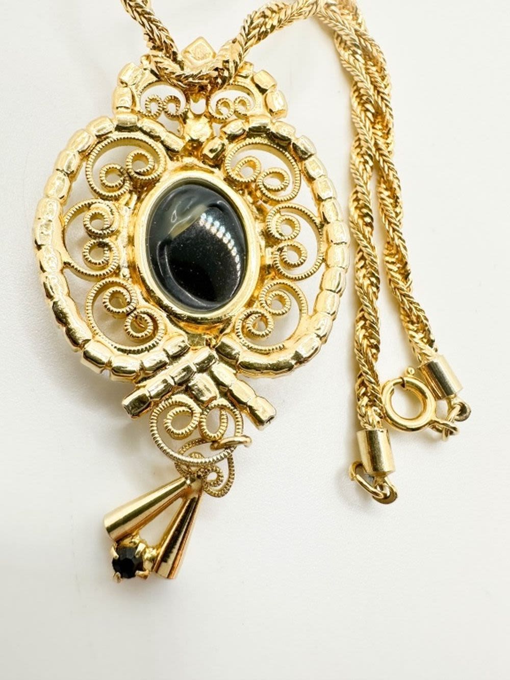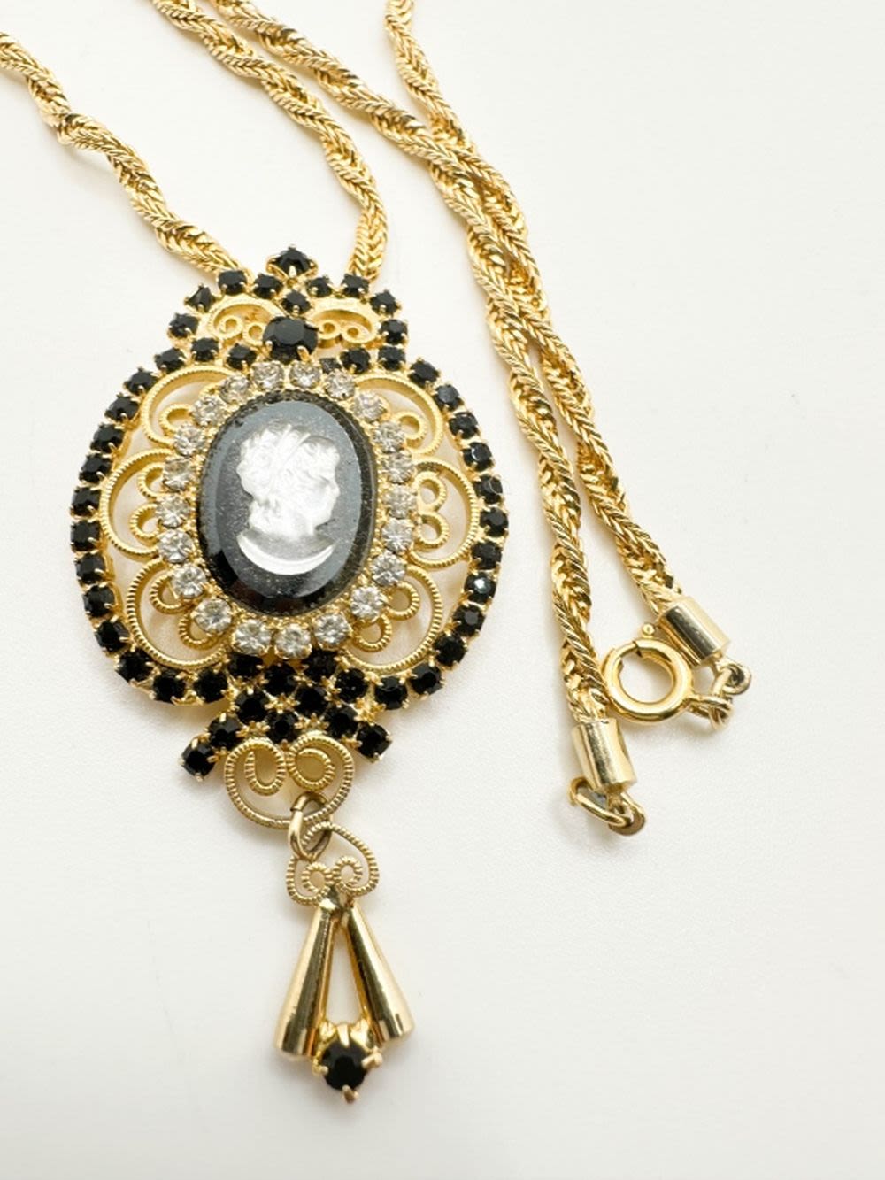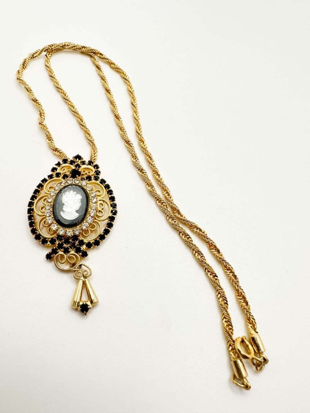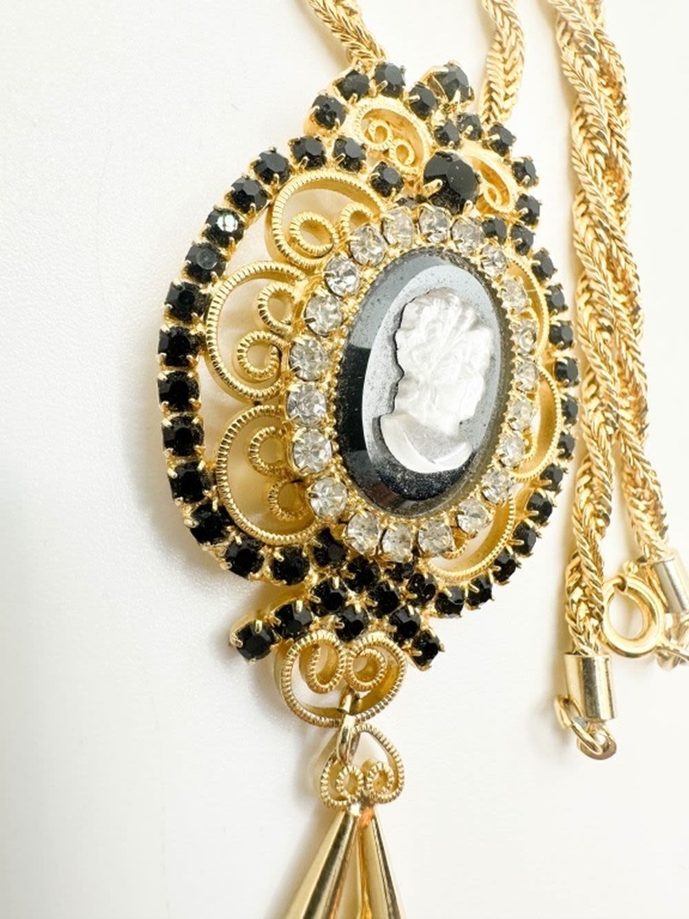 AMAZING CAMEO INTGLIO NECKLACE WITH MULTI COLOR STONES WITH SCROLL WORK IN GOLD TONES