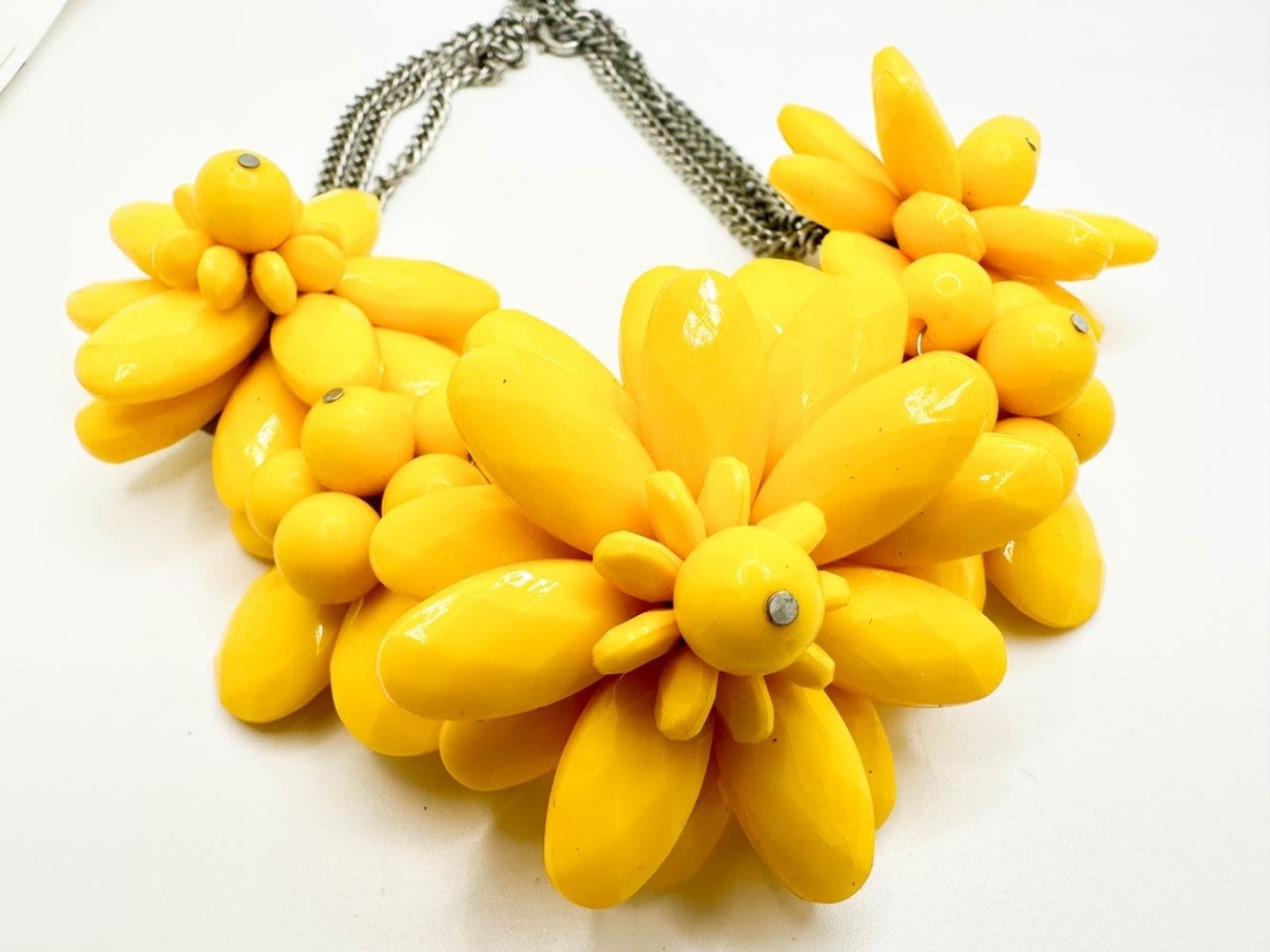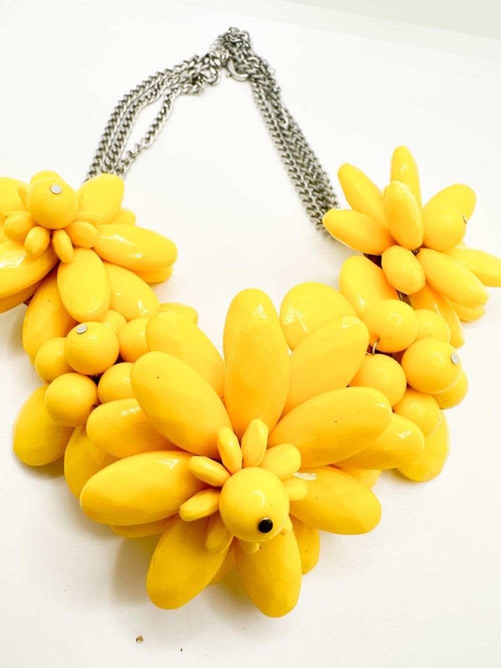 LARGE VIBRANT YELLOW FLORAL NECKLACE STRUNG ON WIRE THREAD