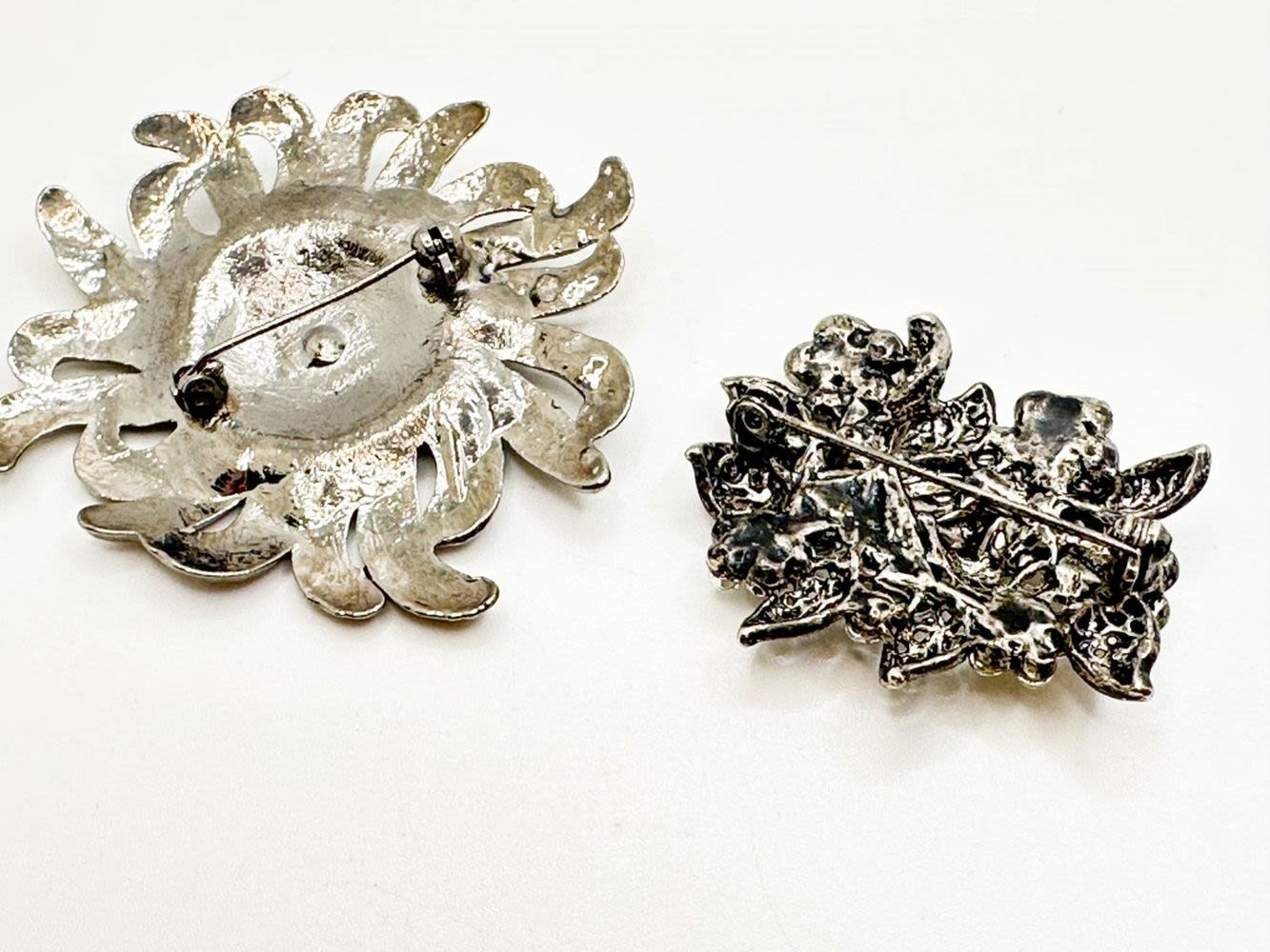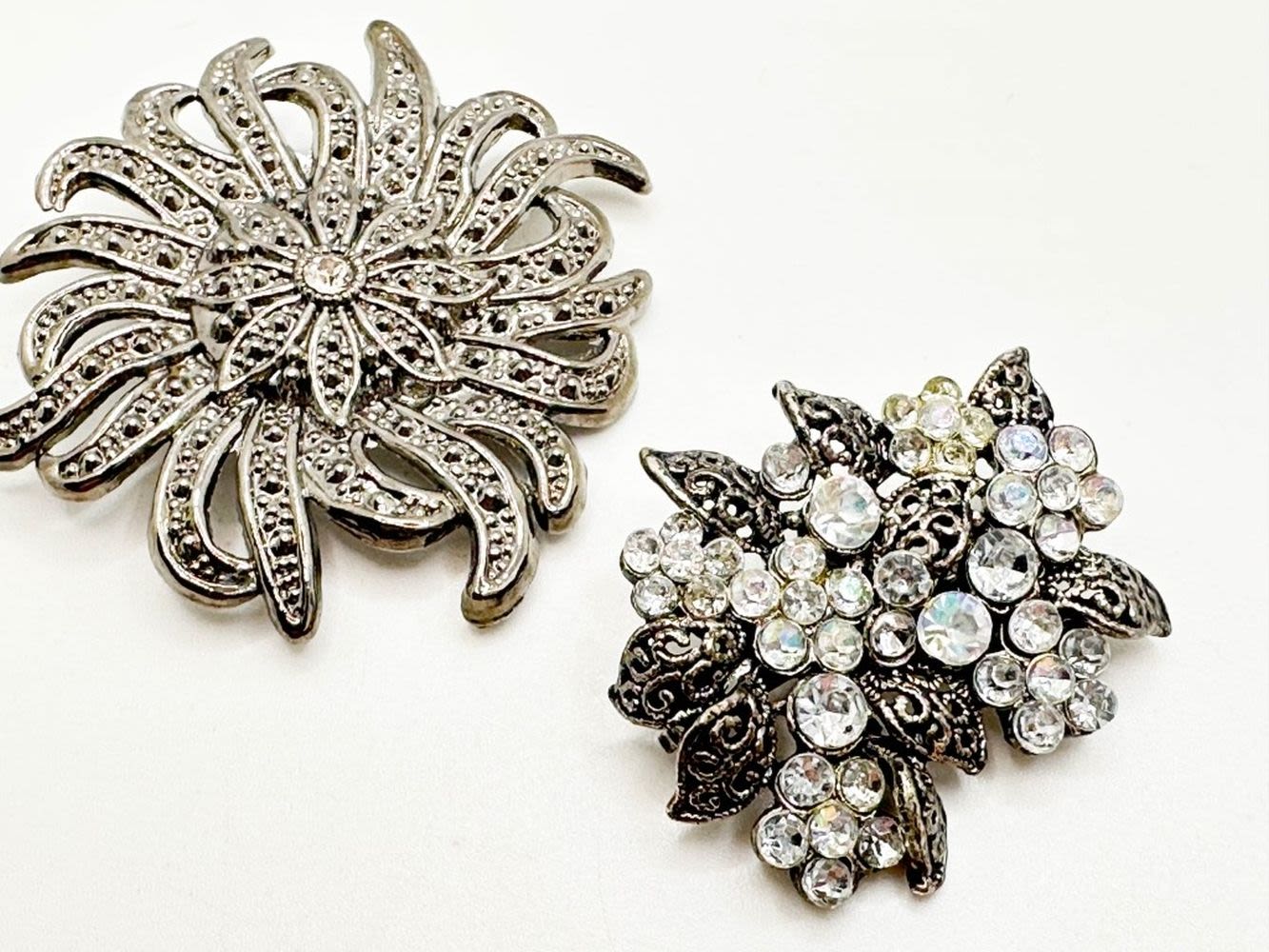 2 FLORAL BROOCH LOT WITH STONES