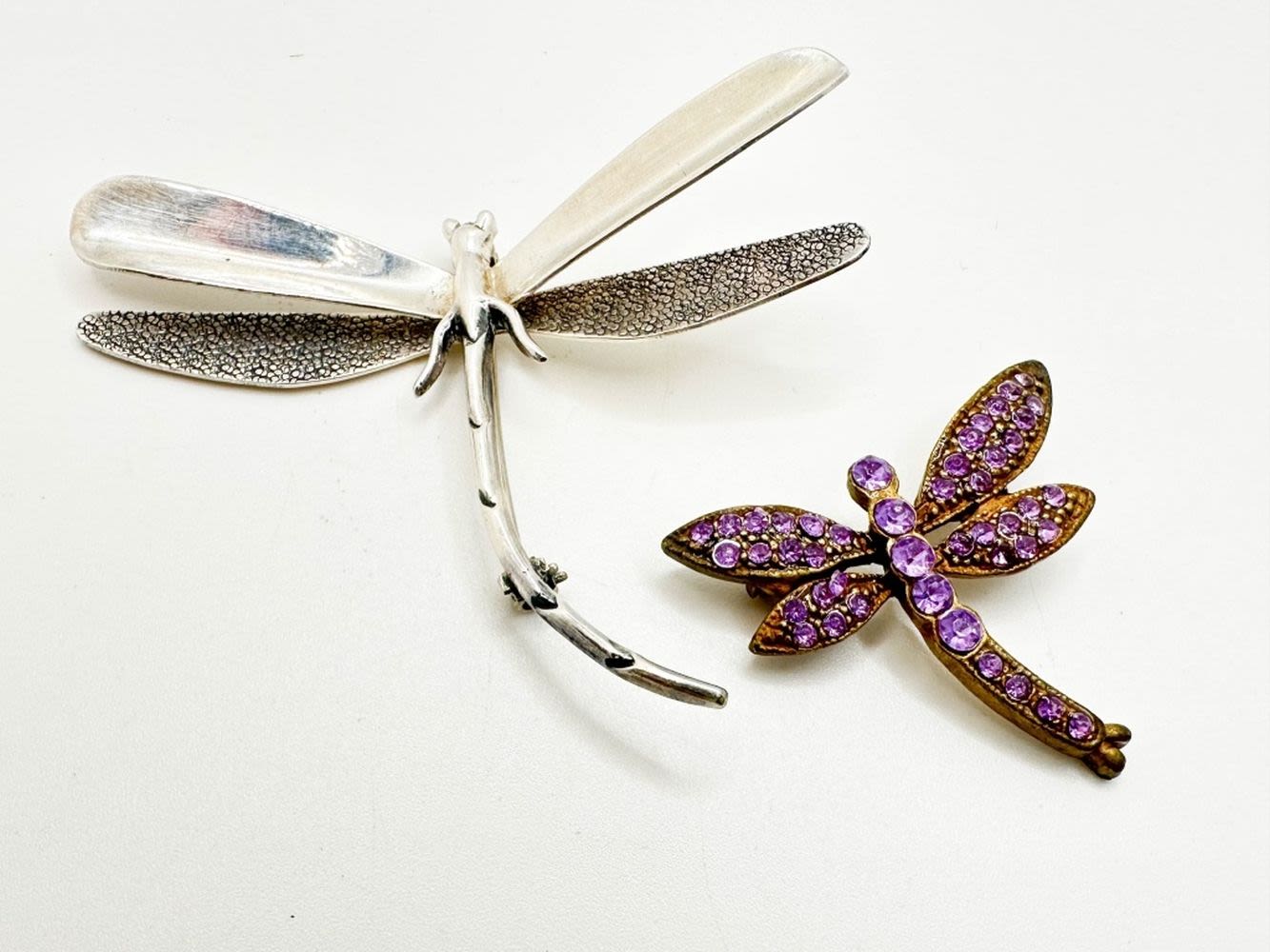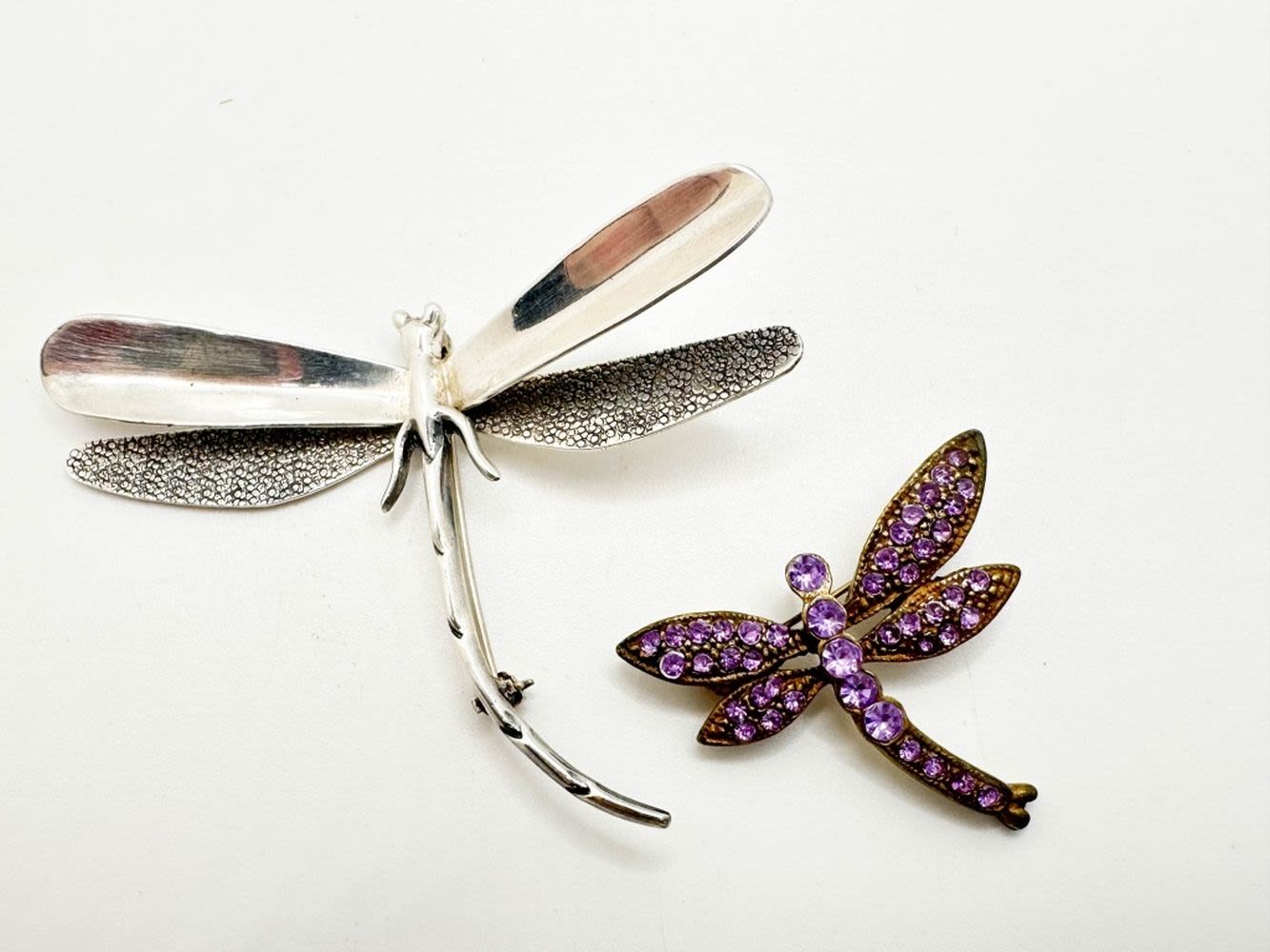 DRAGONFLY BROOCHES, ONE LARGE, ONE WITH STONES