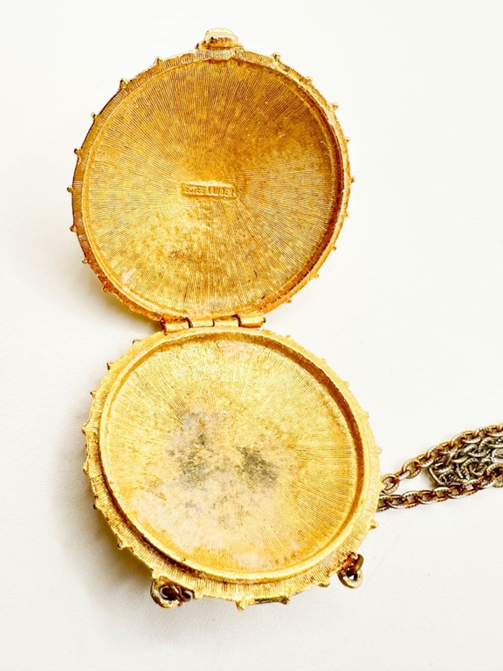 VINTAGE ESTEE LAUDER COMPACT NECKLACE WITH STONE ON FRONT