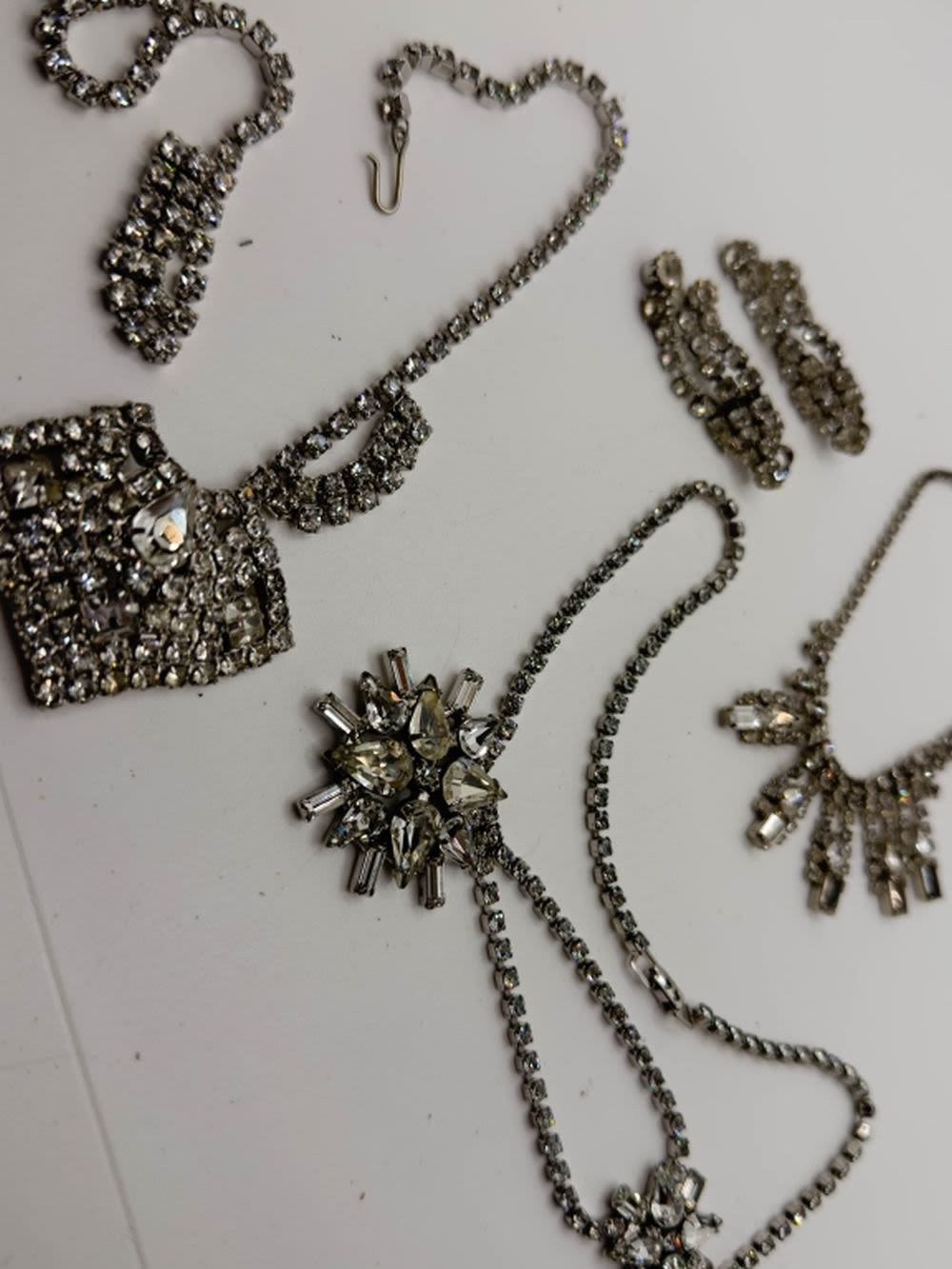 RHINESTONE NECKLACES, ONE BROKEN LINK