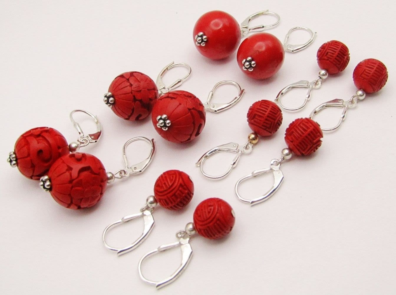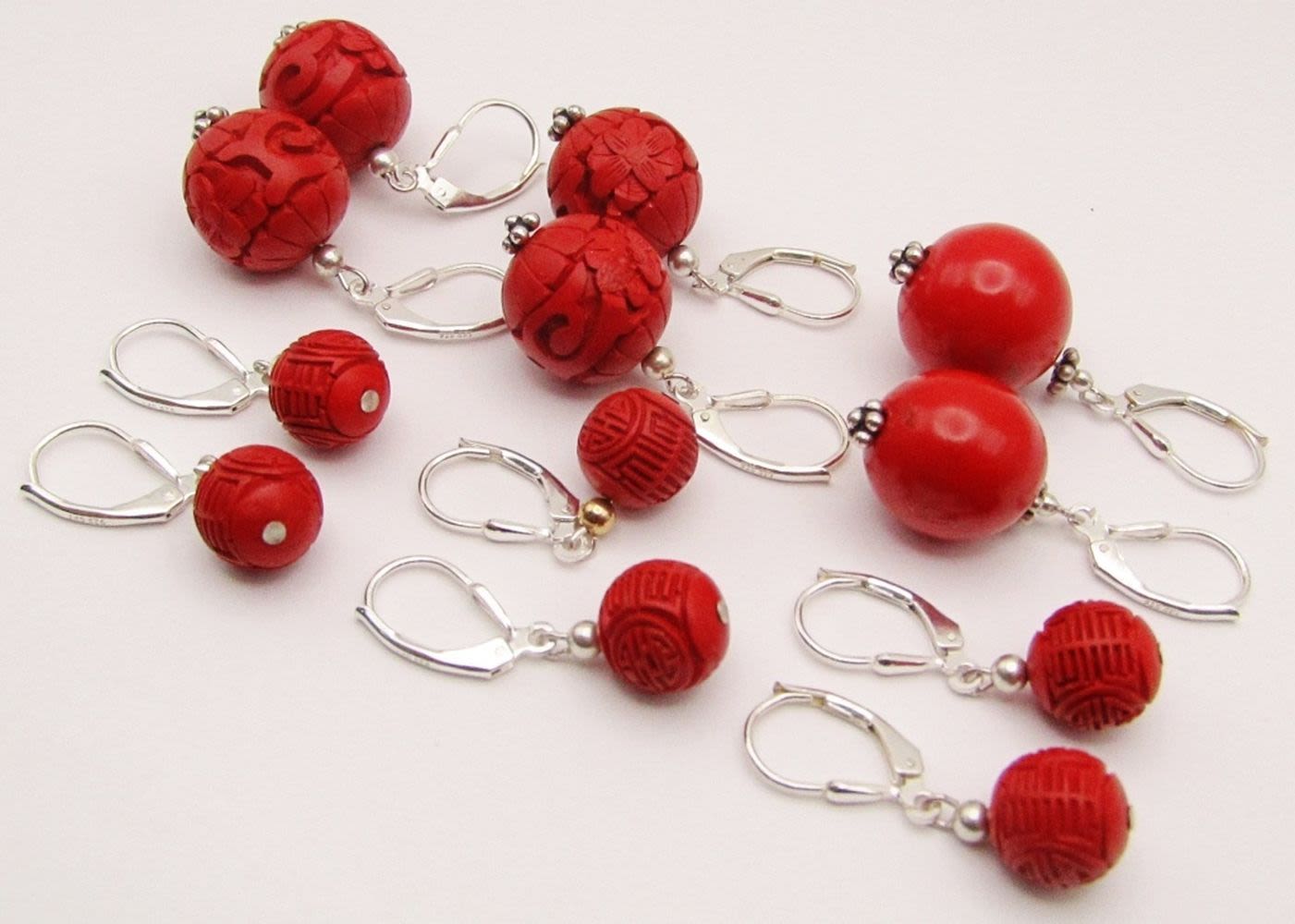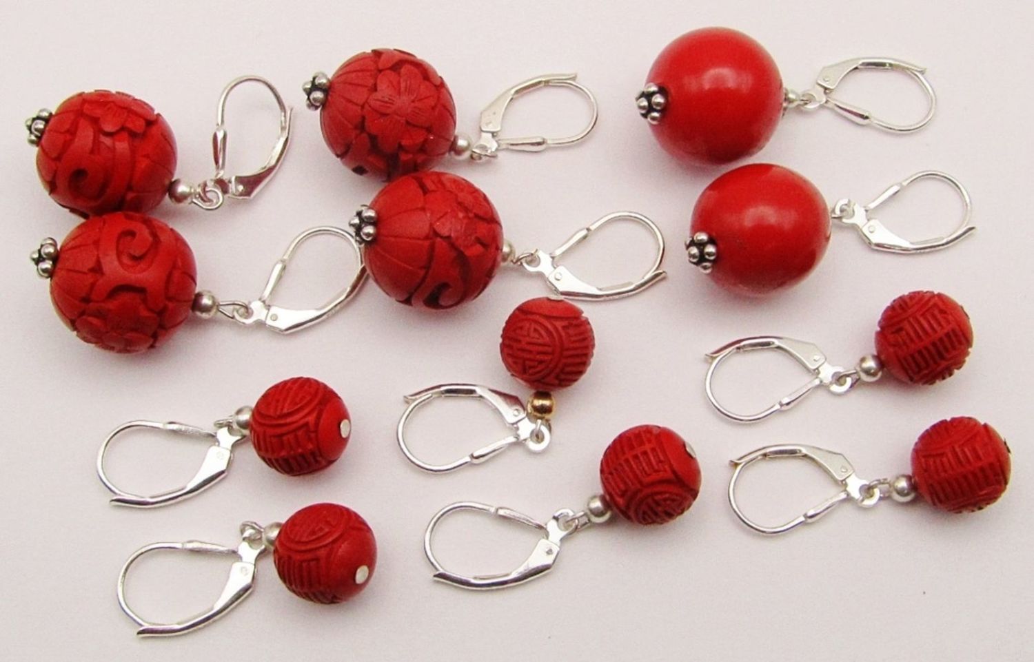 WTH DEEP RED CLAY BEADS (5)WITH CARVED DESIGN