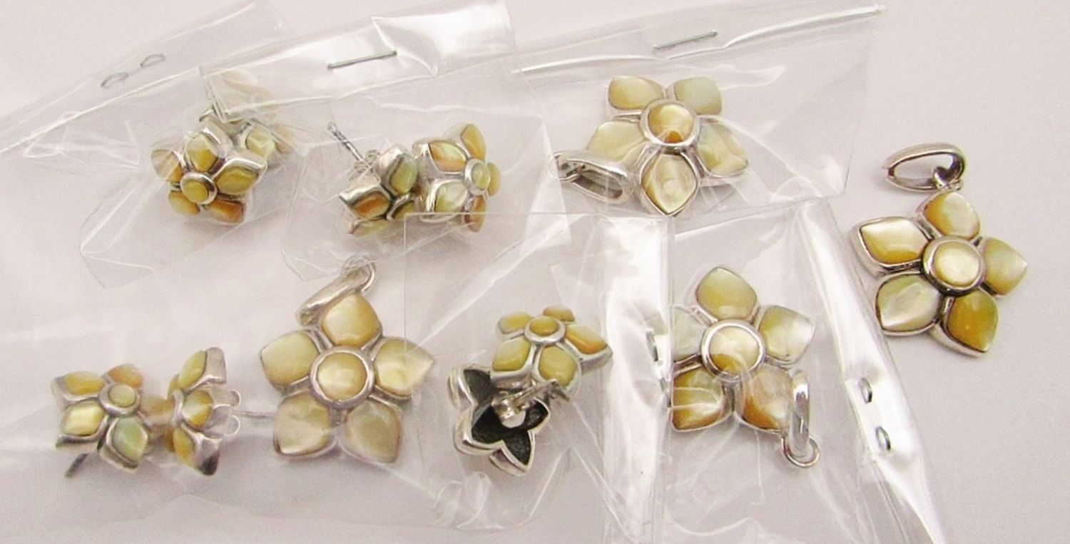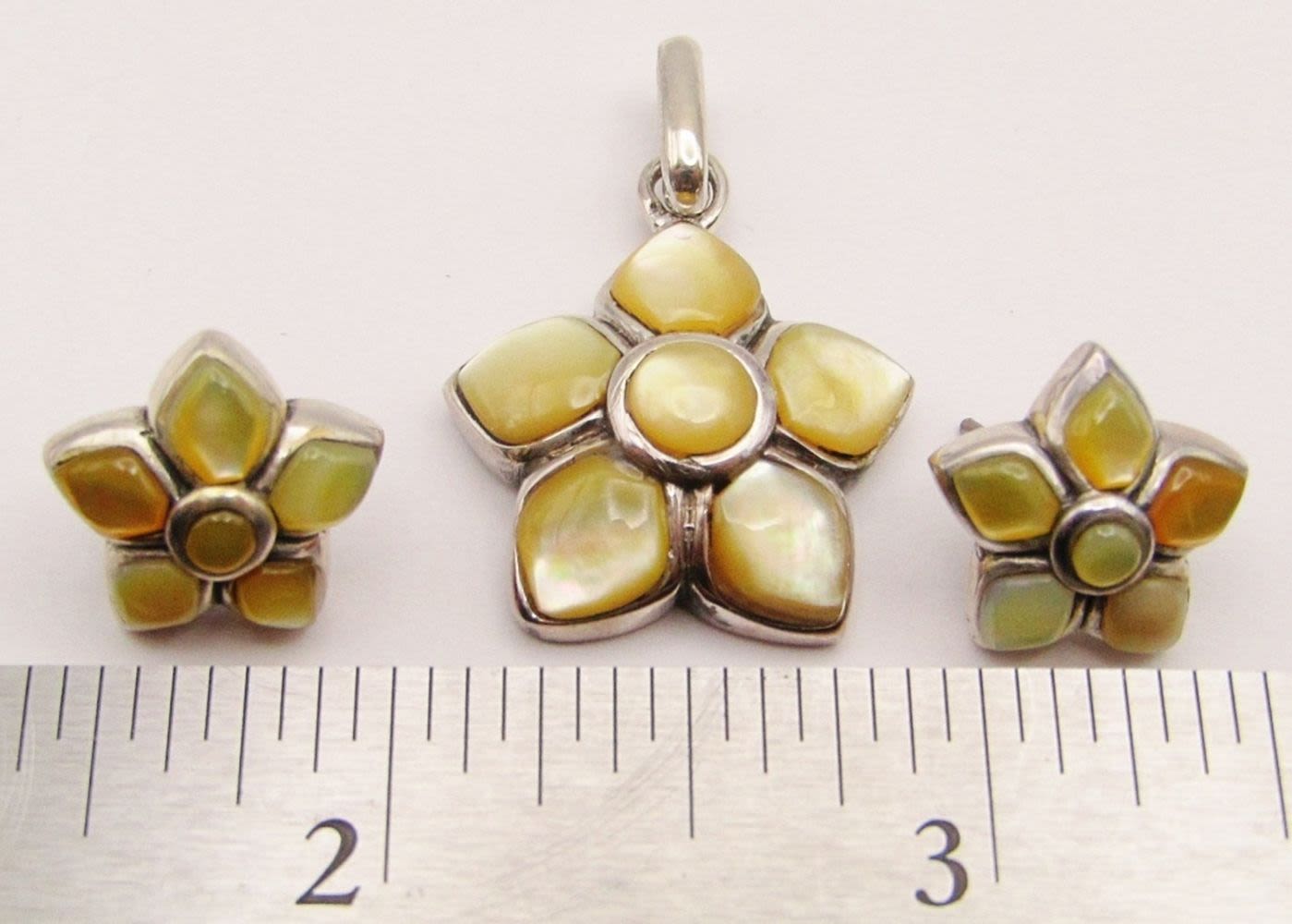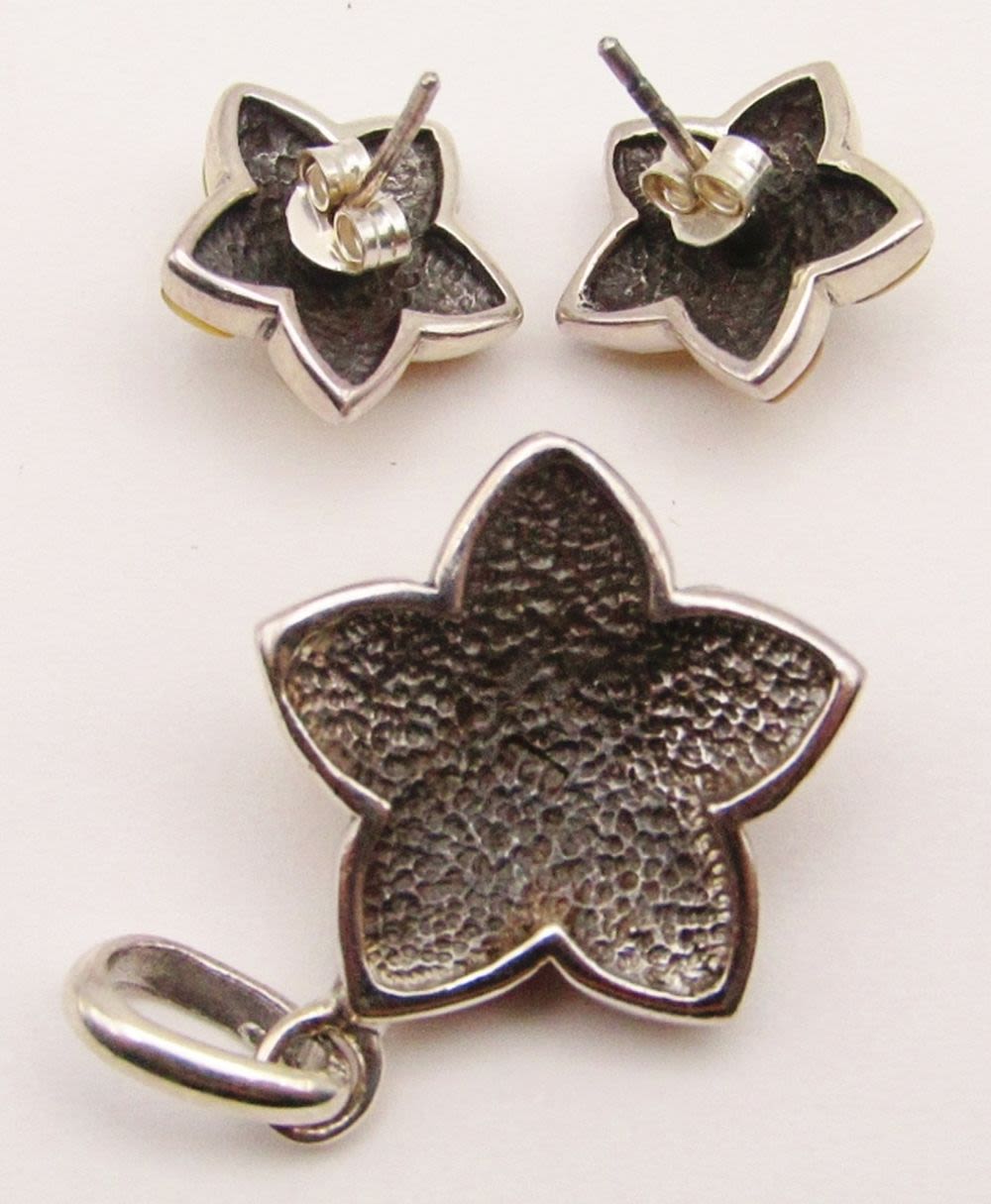 WITH SHELL INLAY WITH MATCHING PAIR OF STUD EARRINGS-TOTAL 32 DWT