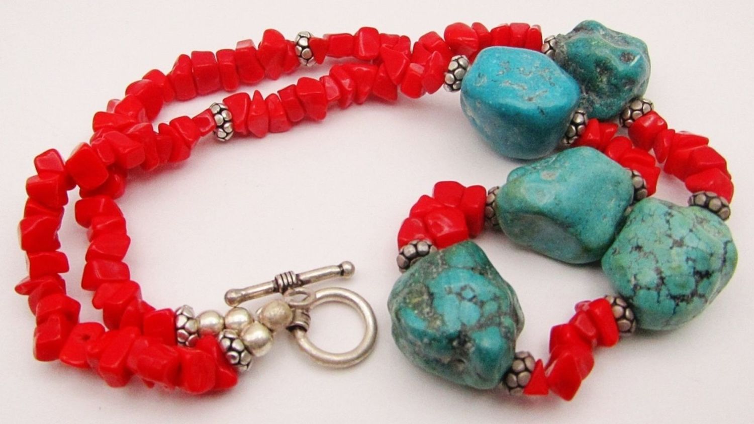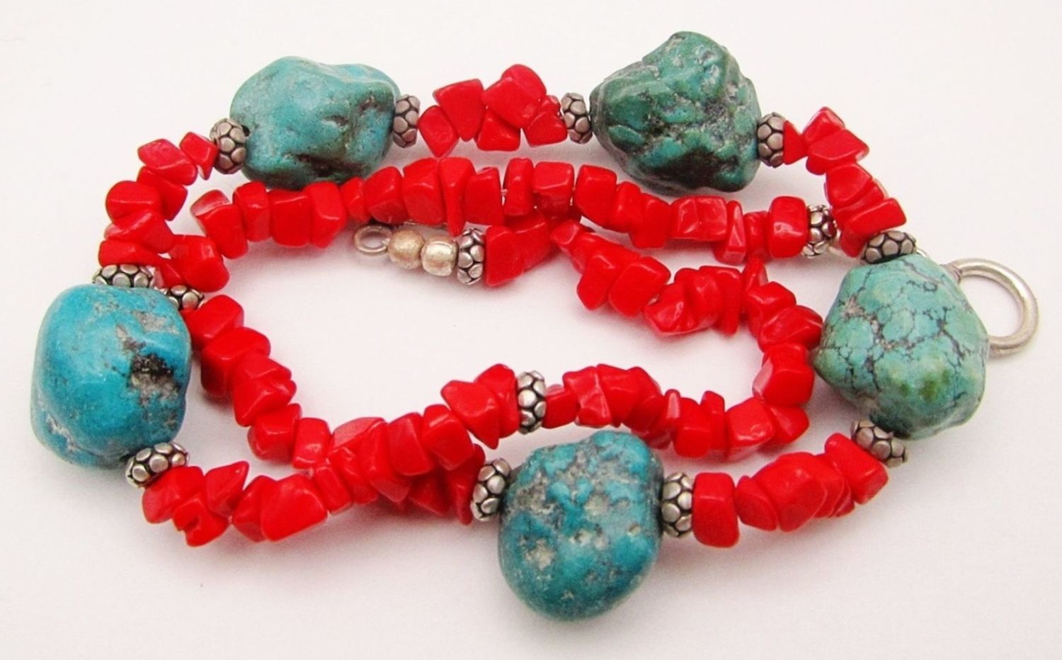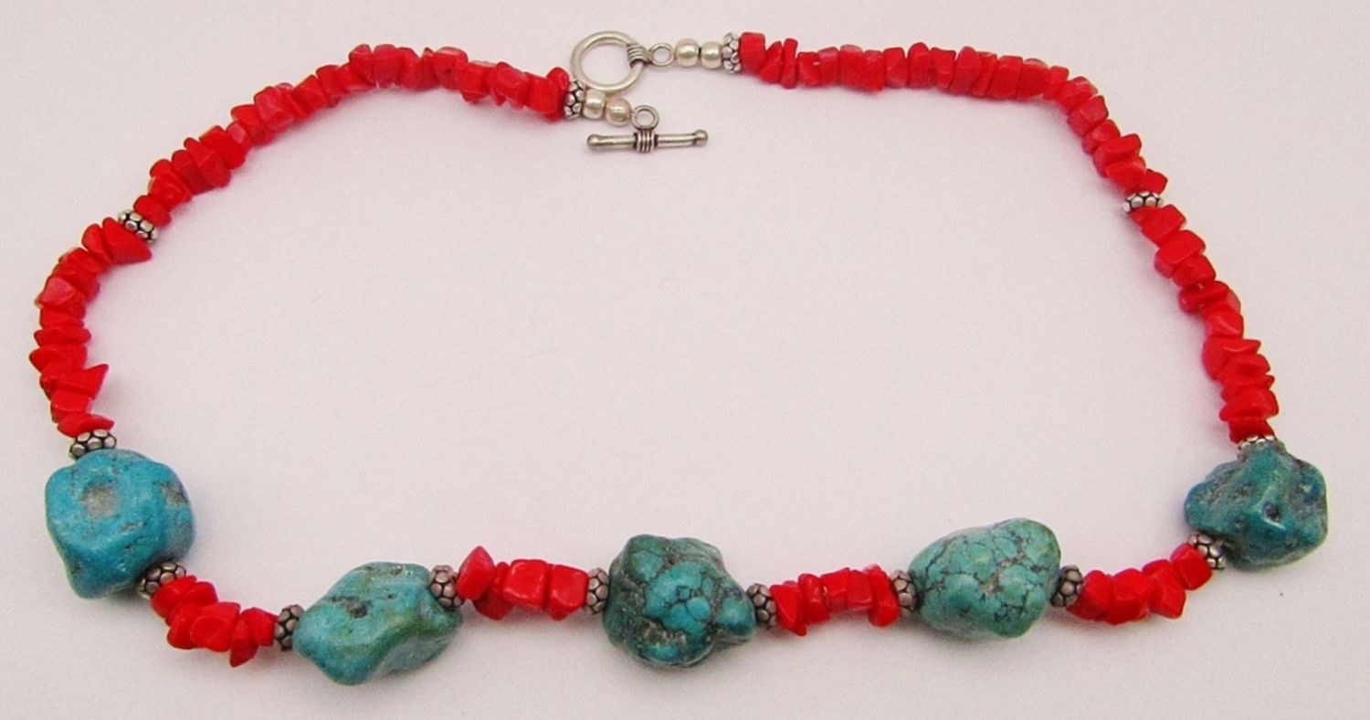 NECKALCE WITH TURQUOISE & 925 BEADS-925 CLASP-TOTAL 34 DWT
