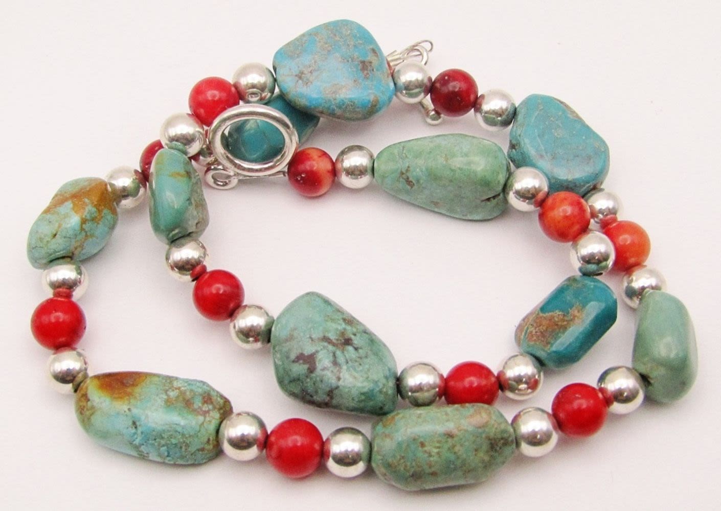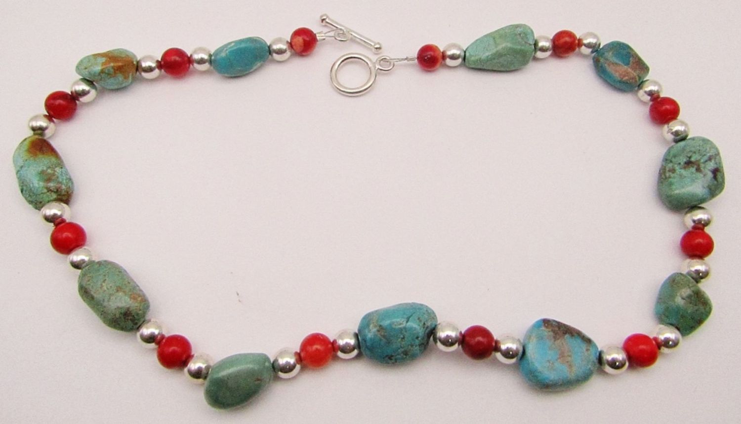 BEADED NECKLACE WITH STERLING TOGGLE CLASP-MEASURES 16 INCHES-TOTAL 22 DWT