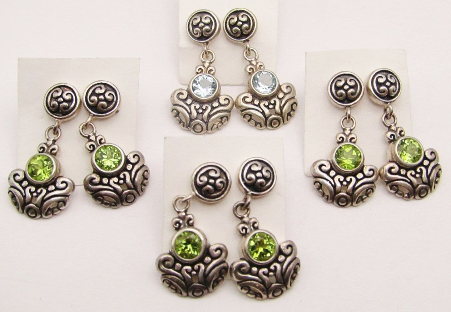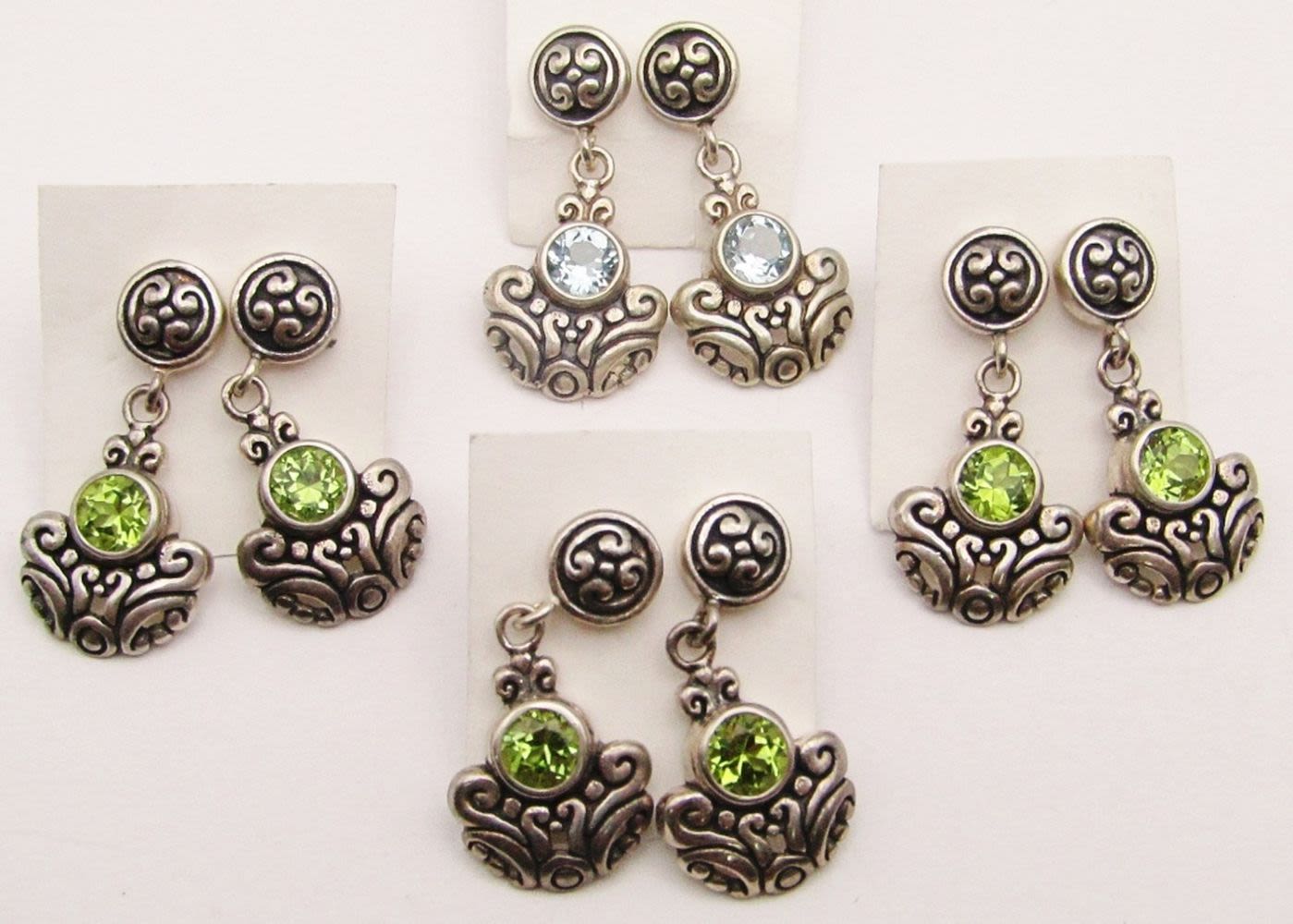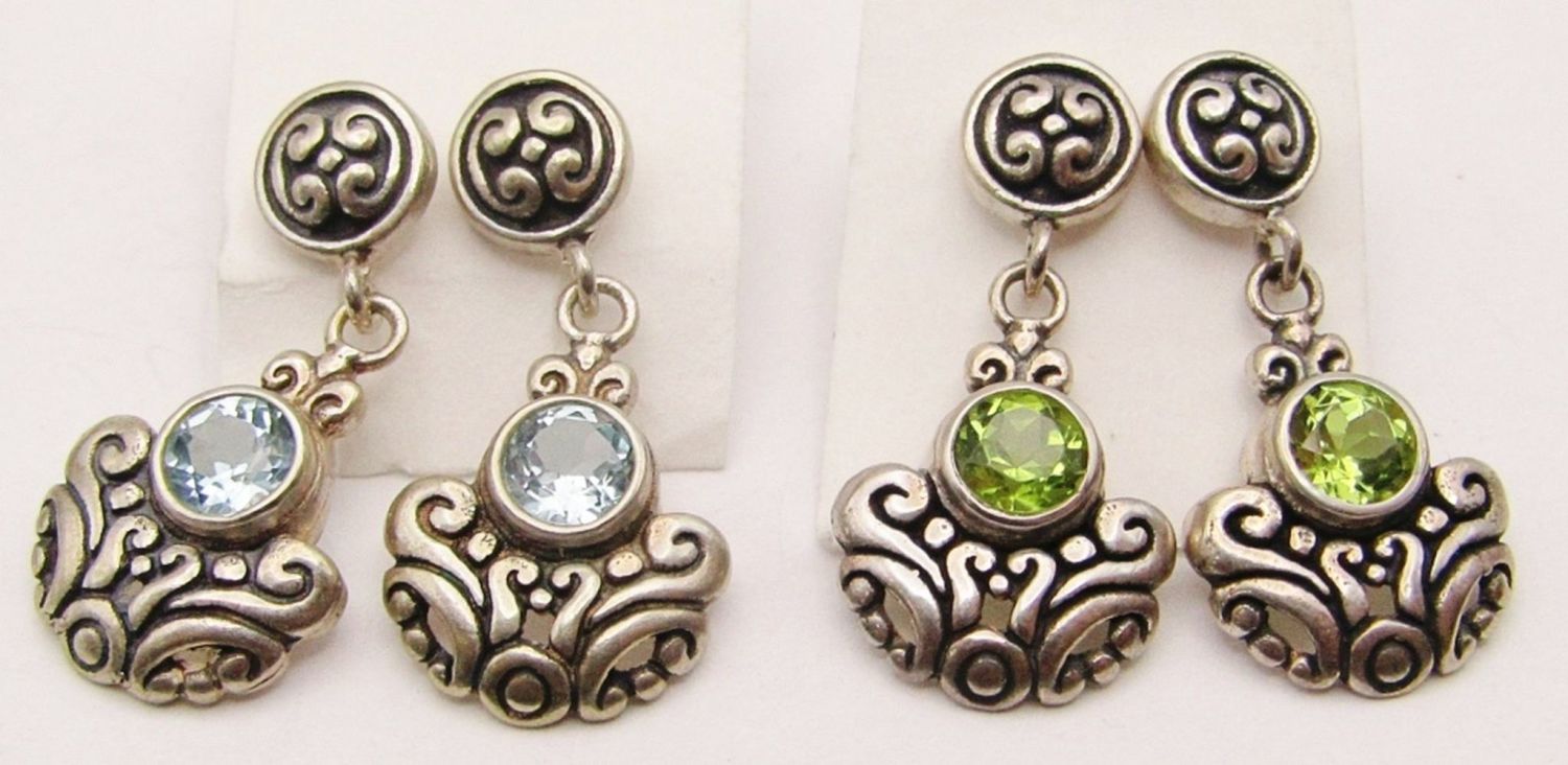 FASHION EARRINGS WITH PERIDOT & BABY BLUE STONE ACCENTS-TOTAL 13 DWT
