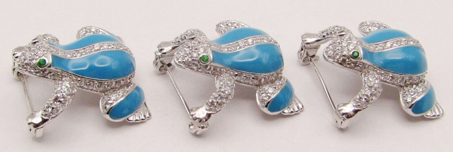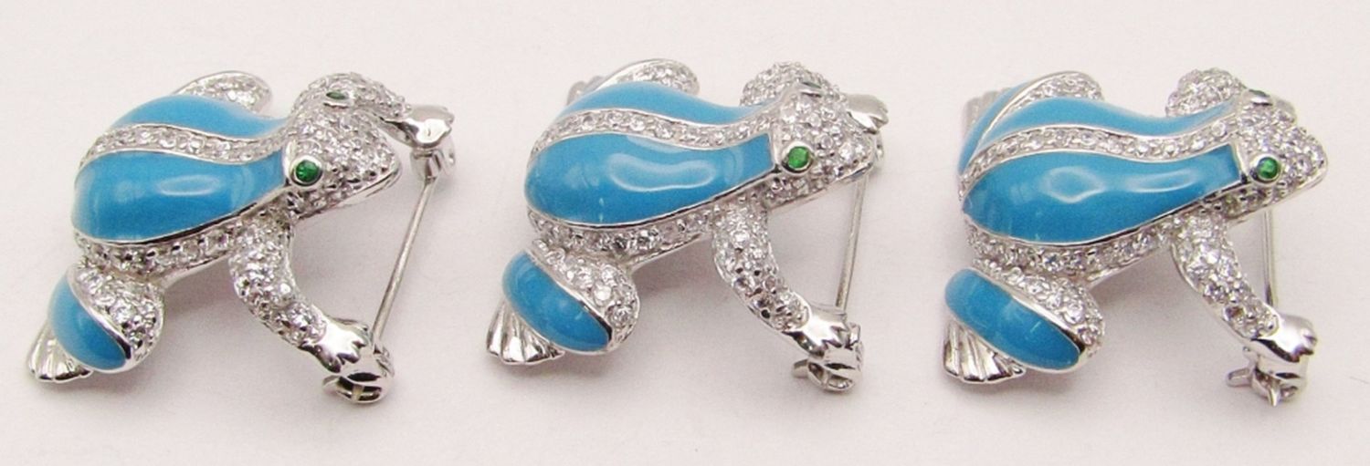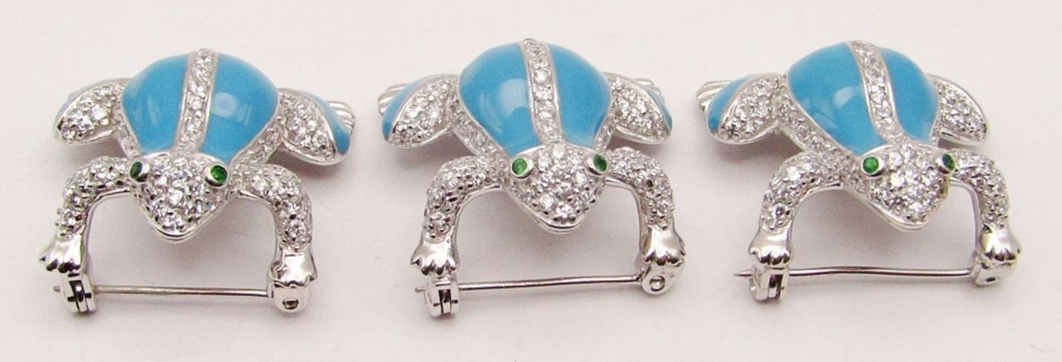 RHINESTONES/TEAL ENAMEL/EMRALD GREEN RHINESTONE EYES-TOTAL 17 DWT