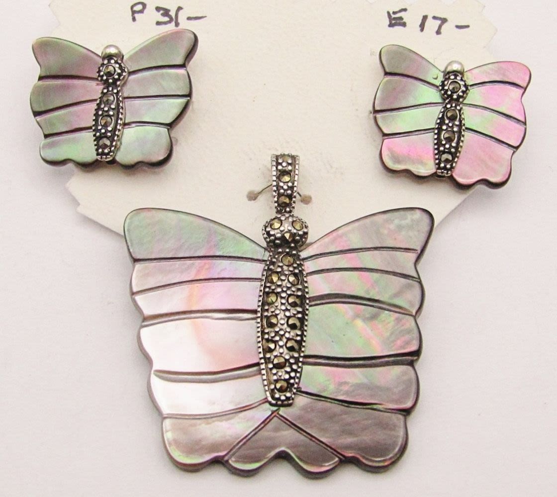 SET! STERLING MARCASITE BUTTERFLY PENDANT