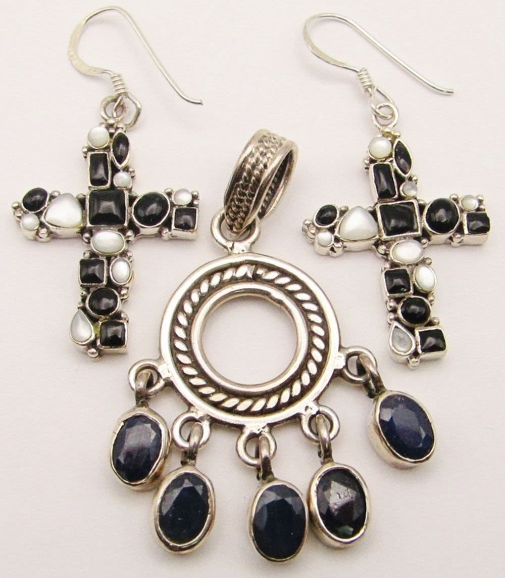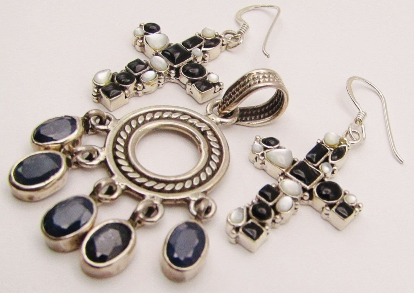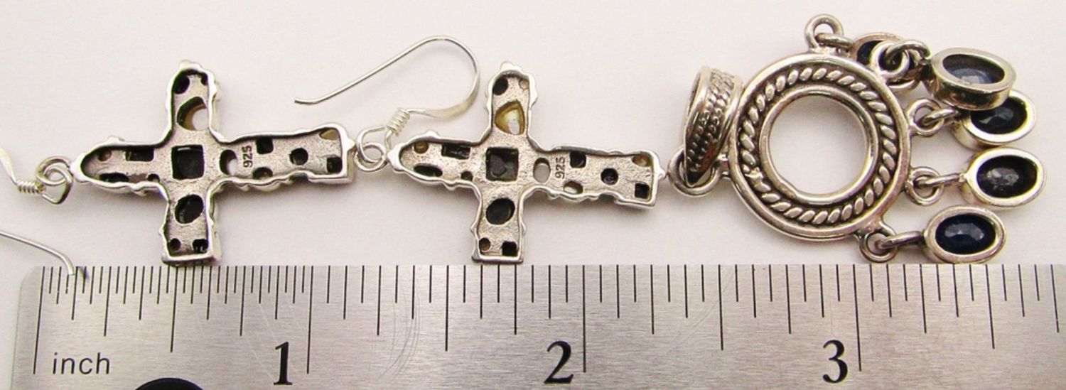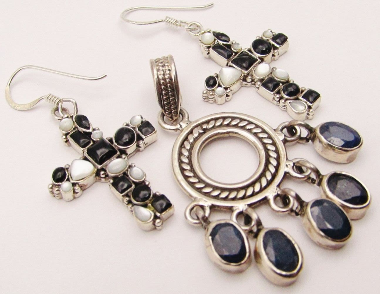 DANGLY CHARMS PLUS BONUS PAIR OF PIERCED DANGLY CROSS EARRINGS WITH MOTHER OF PEARL AND ONYX STONE ACCENTS-TOTAL 8 DWT