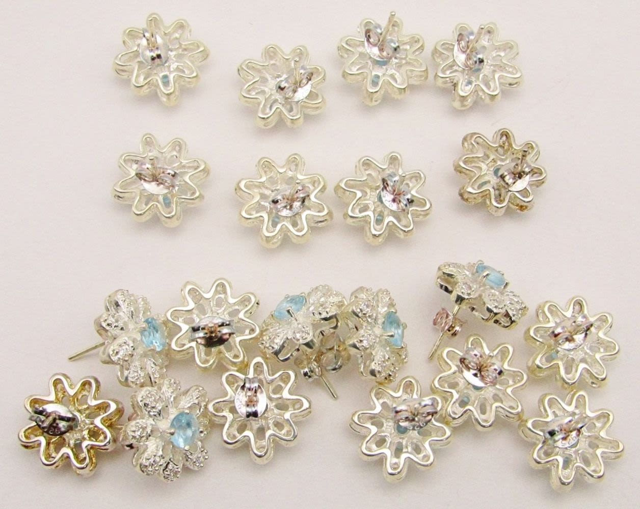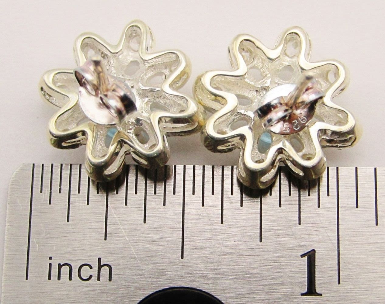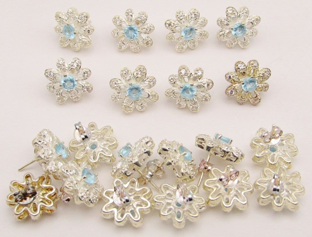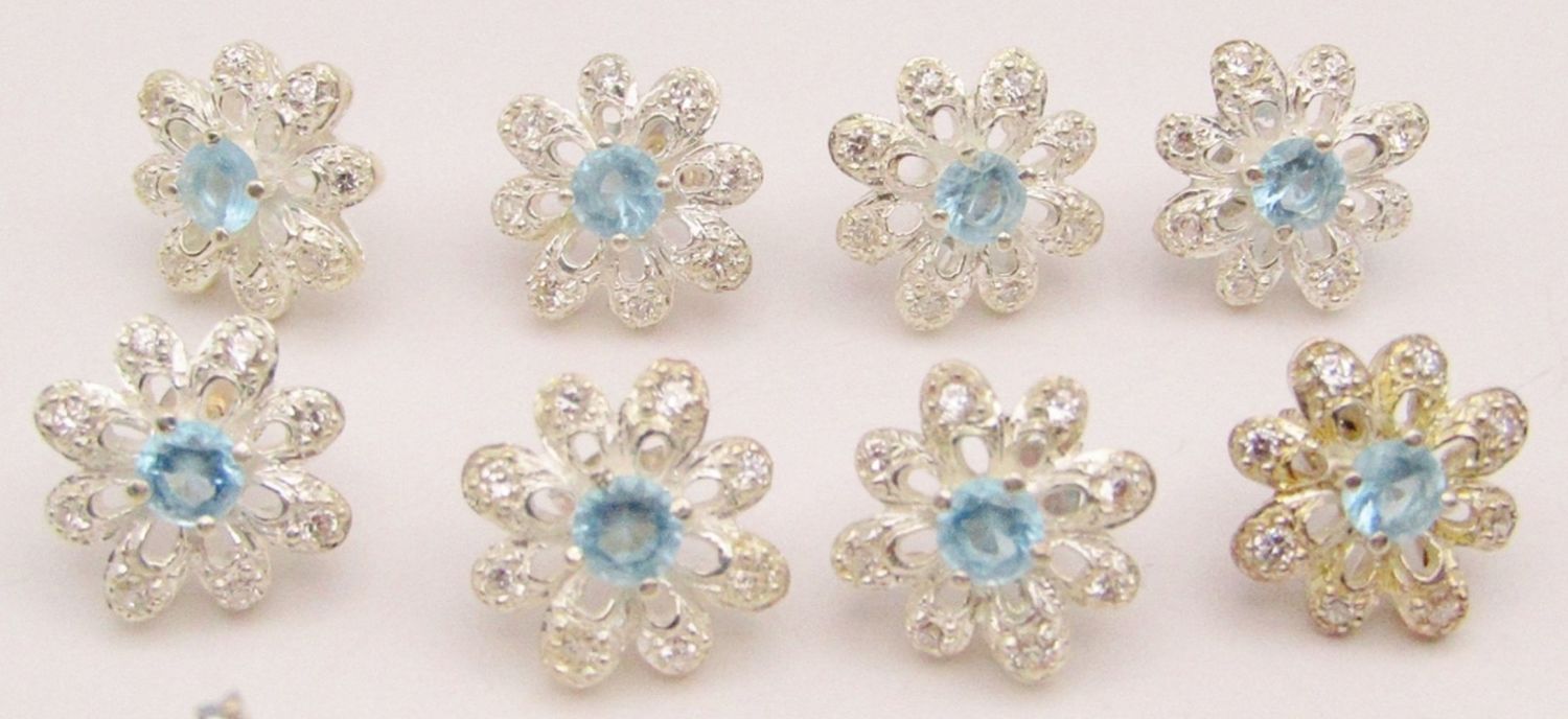 STUD EARRINGS WITH BABY BLUE CENTER STONE-TOTAL 24 DWT