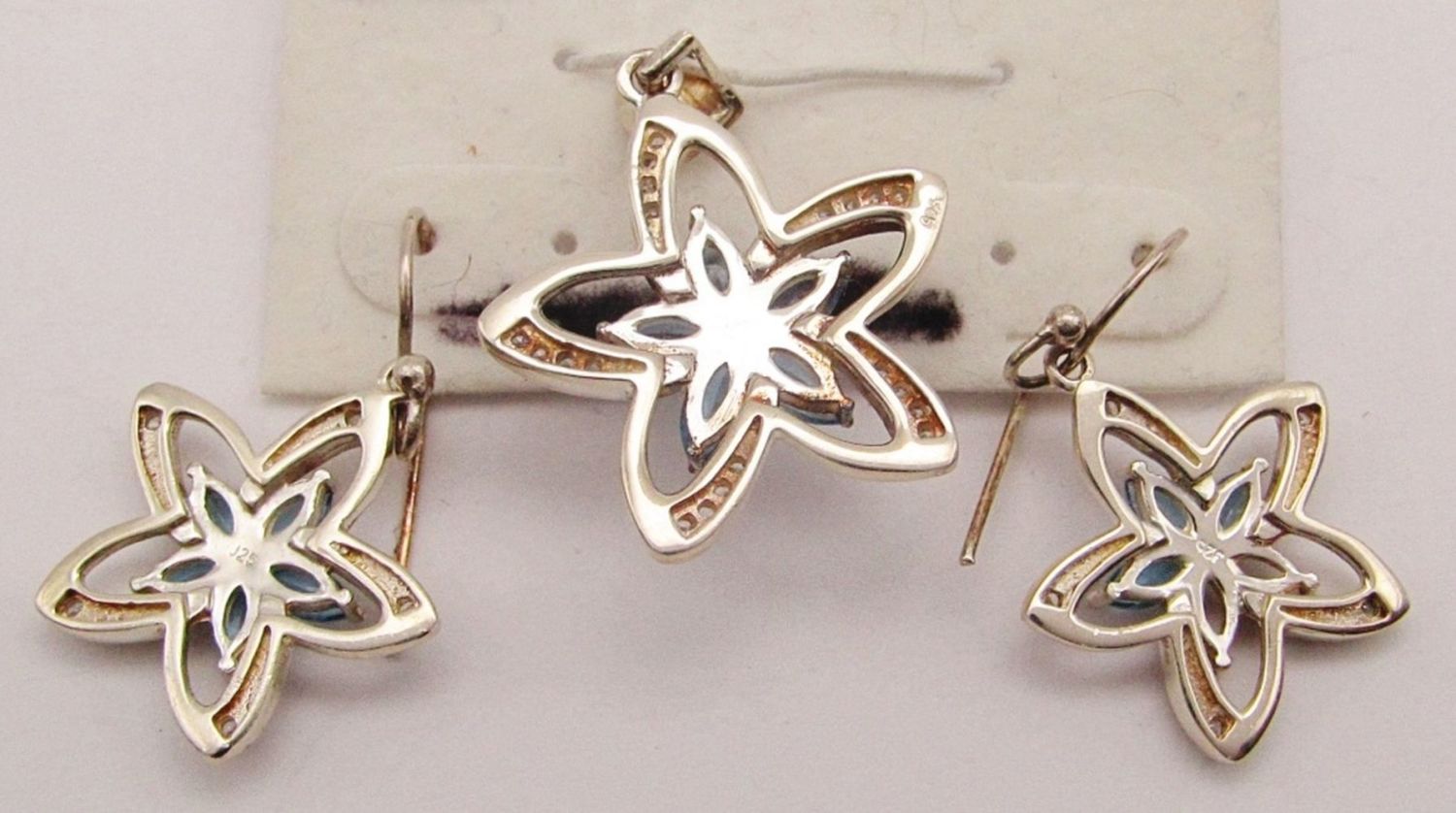 CLEAR STONES WITH MATCHING PAIR OF PIERCED DANGLY EARRINGS-TOTAL 7 DWT