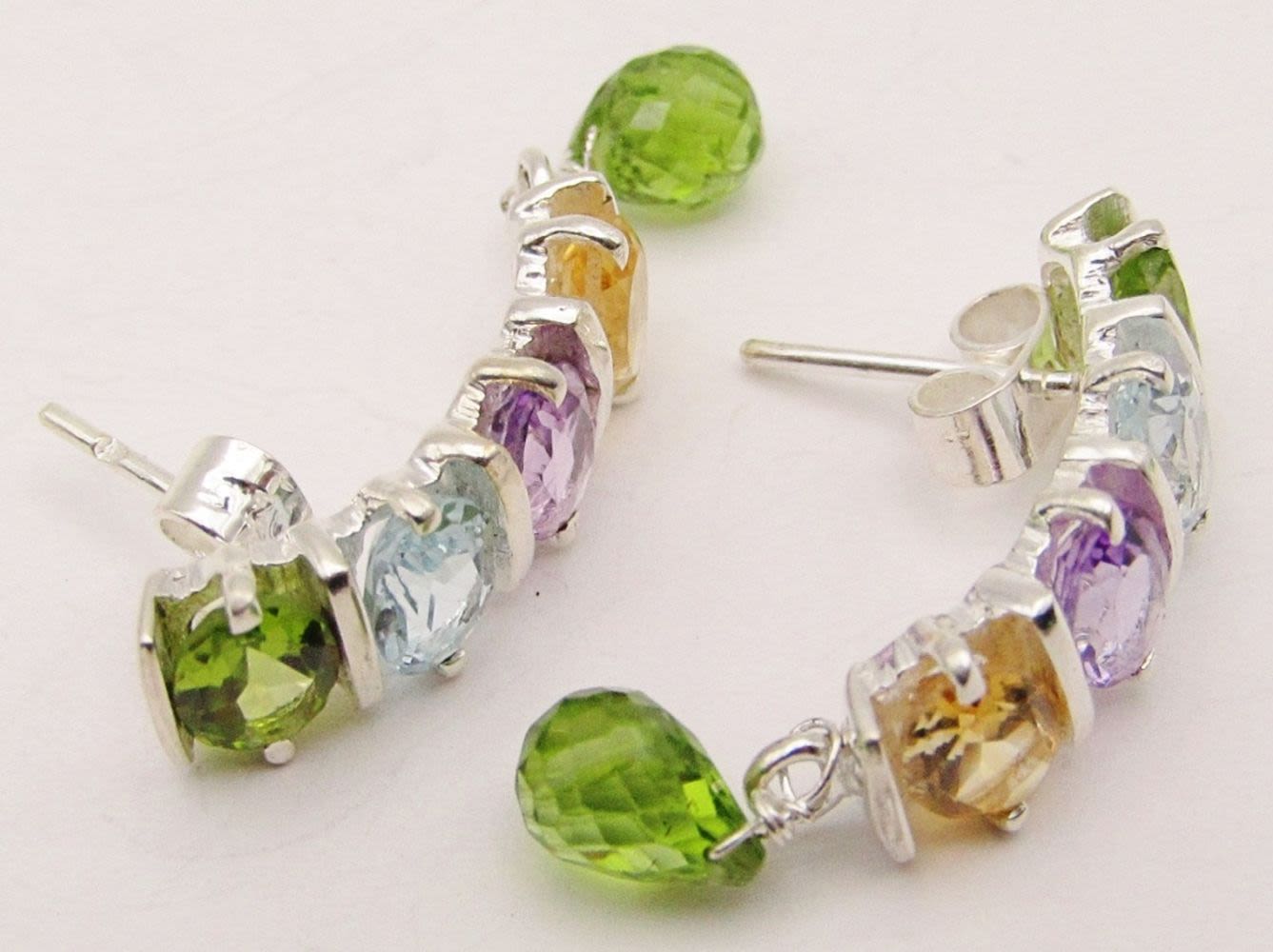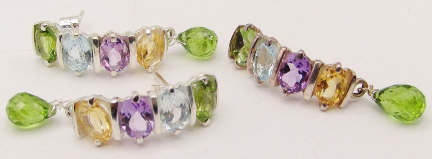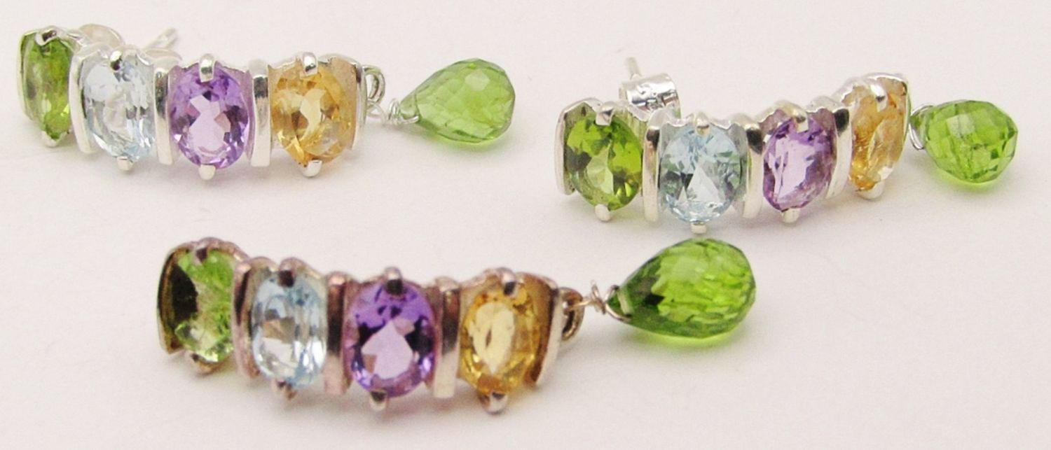 MATCHING PAIR OF EARRINGS WITH PERIDOT BEAD CHARM-TOTAL 7 DWT