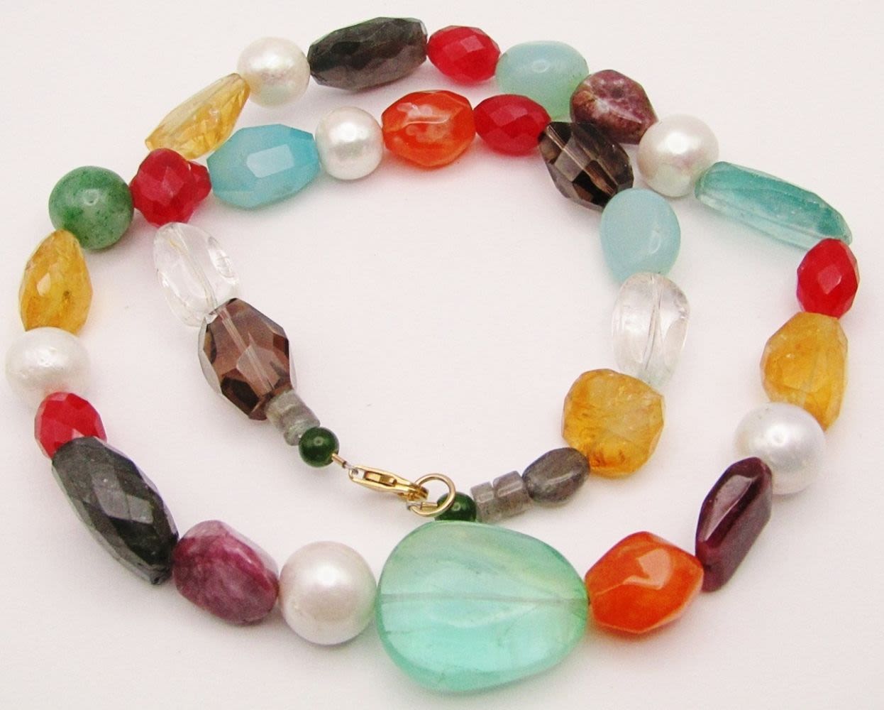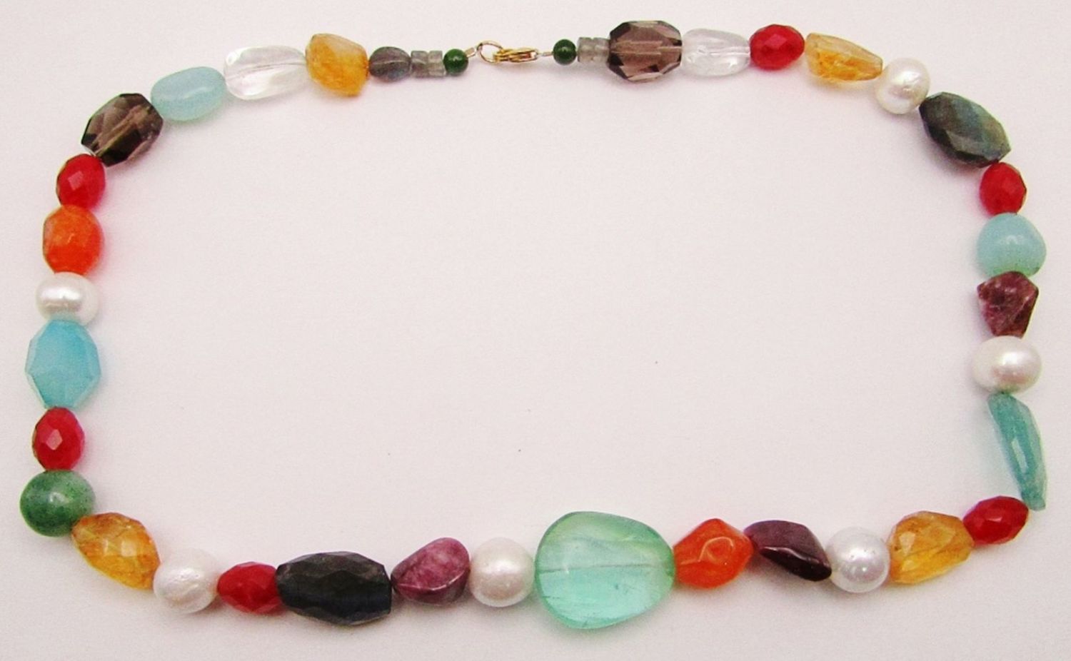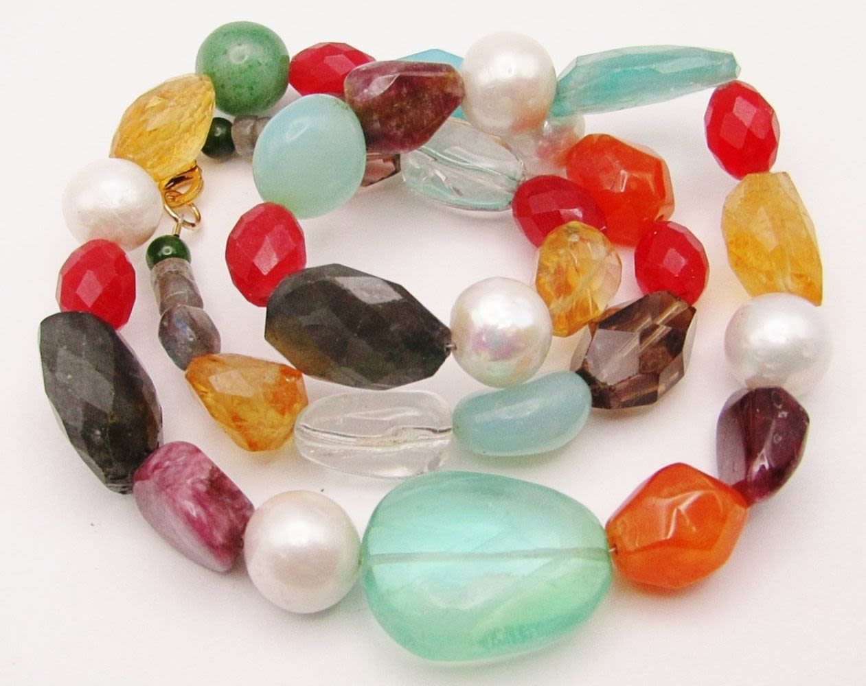 CITRINE-AMBER-AMETHYST-MOONSTONE-JADE-PEARLS & MUCH MORE! GOLD FILLED CLASP-MEASURES 22 INCHES
