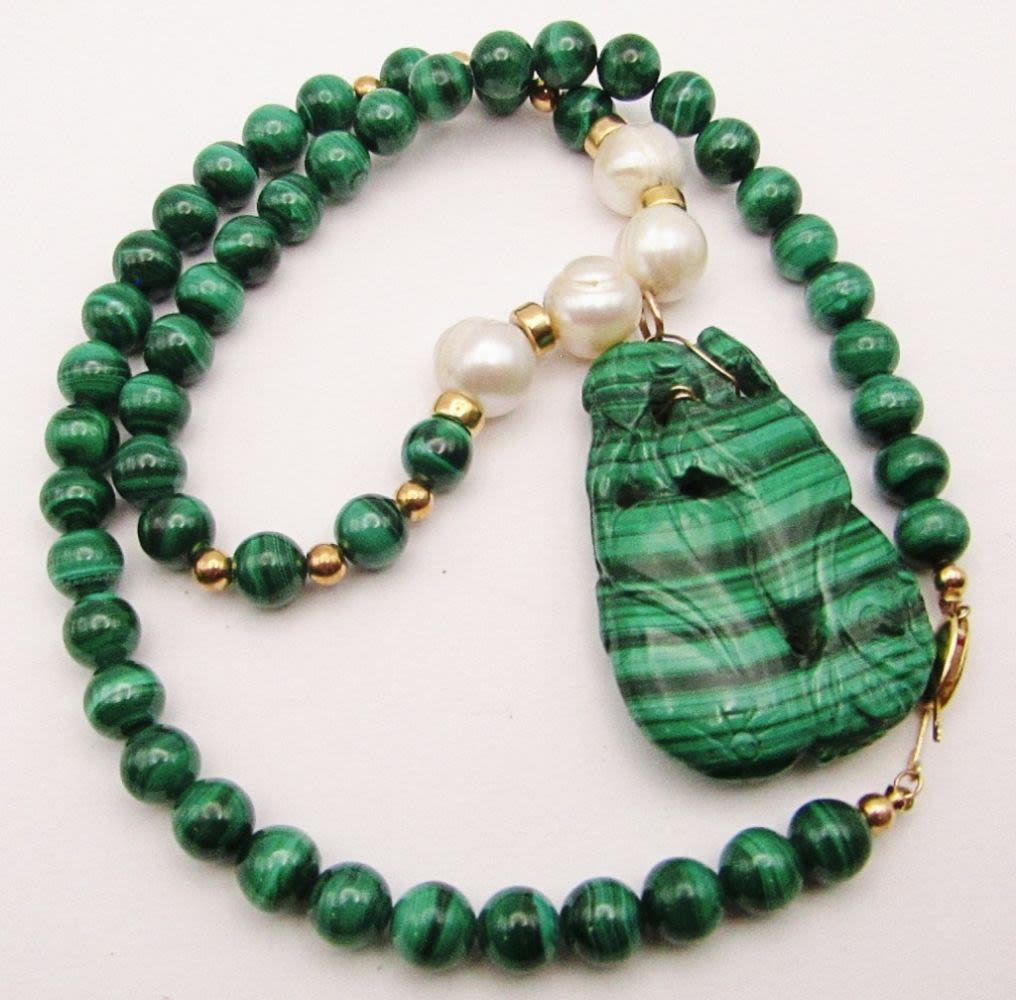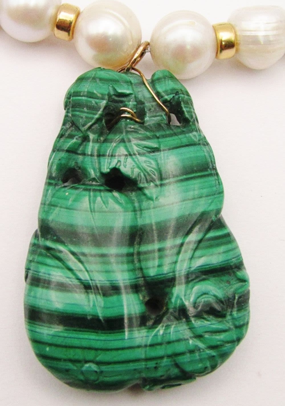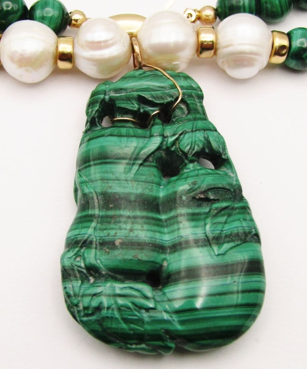BEAD AND PEARLS-CARVE MARCASITE PENDANT-GOLD FILLED CLASP-MEASURES 20 INCHES-TOTAL 63 DWT-SUGGESTED RETAIL $485