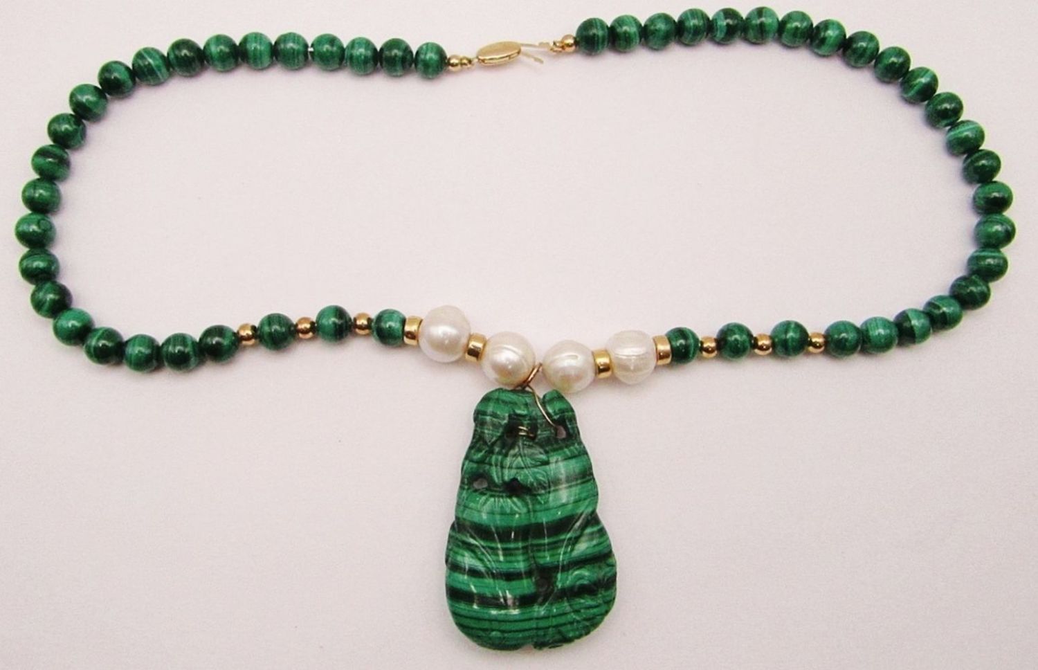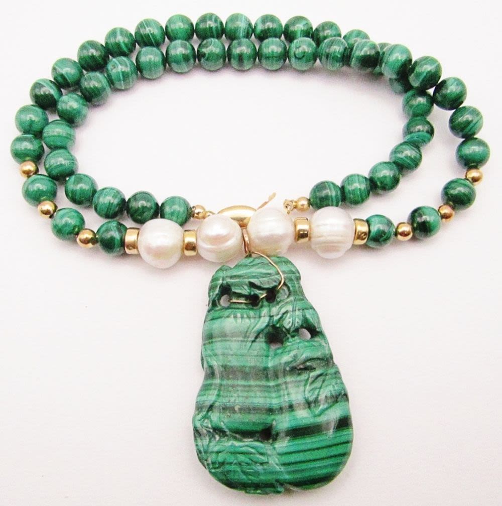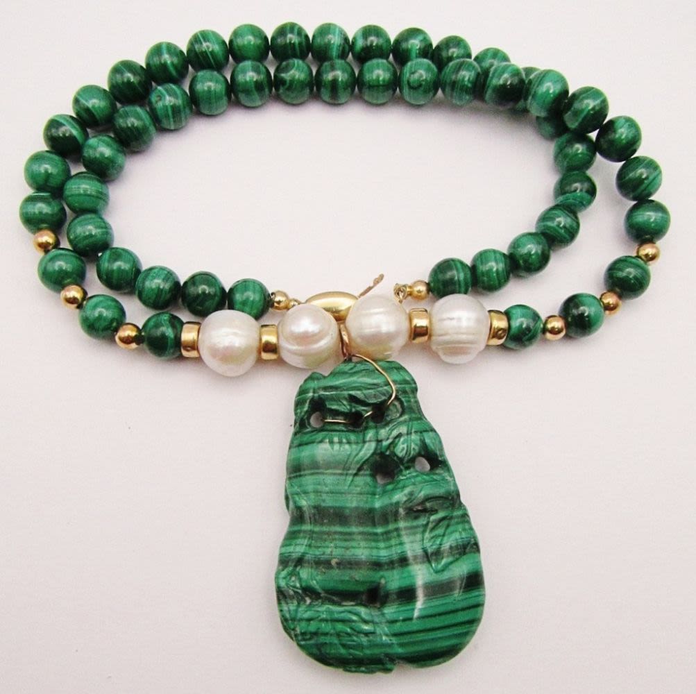 BEAD AND PEARLS-CARVE MARCASITE PENDANT-GOLD FILLED CLASP-MEASURES 20 INCHES-TOTAL 63 DWT-SUGGESTED RETAIL $485