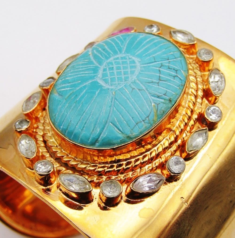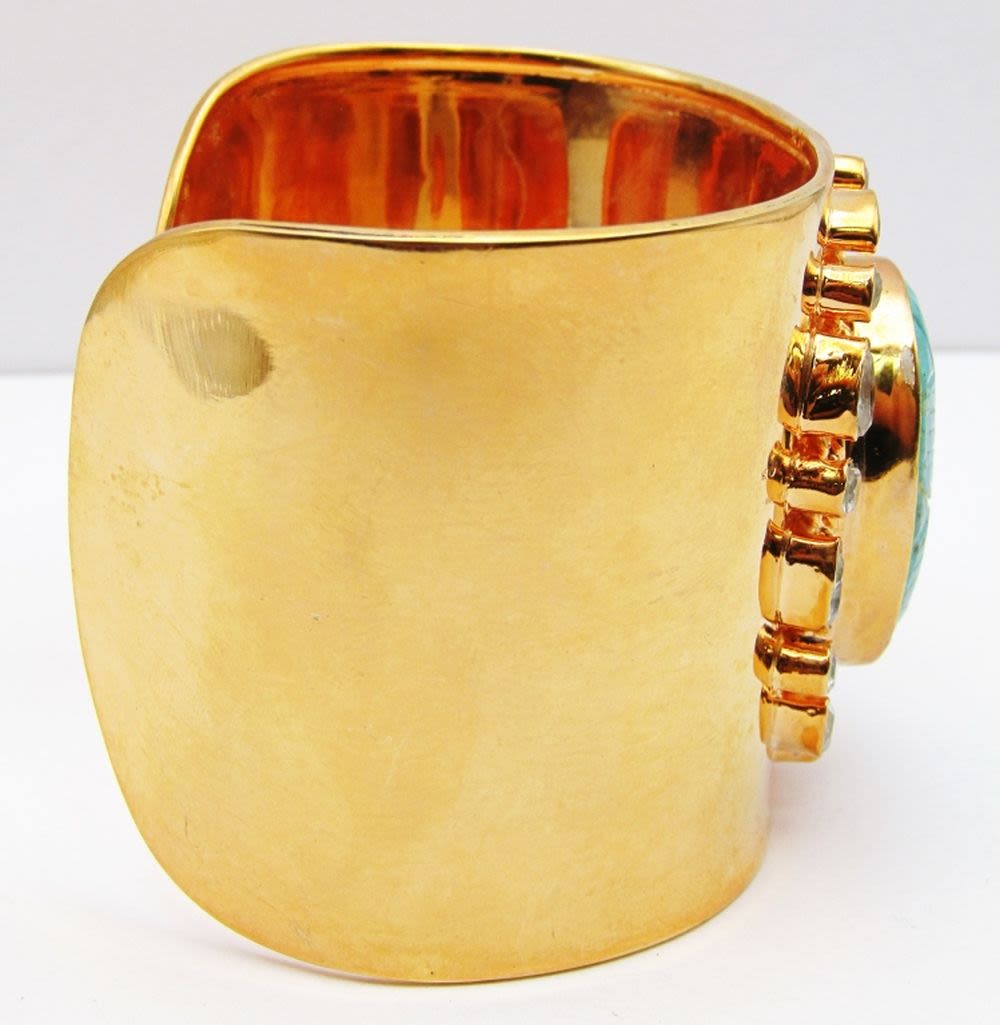 TURQUOISE CENTER STONE-CLEAR STONE AROUND BORDER-MEASURES 7.5 INCHES WITH GAP-TOTAL 35 DWT