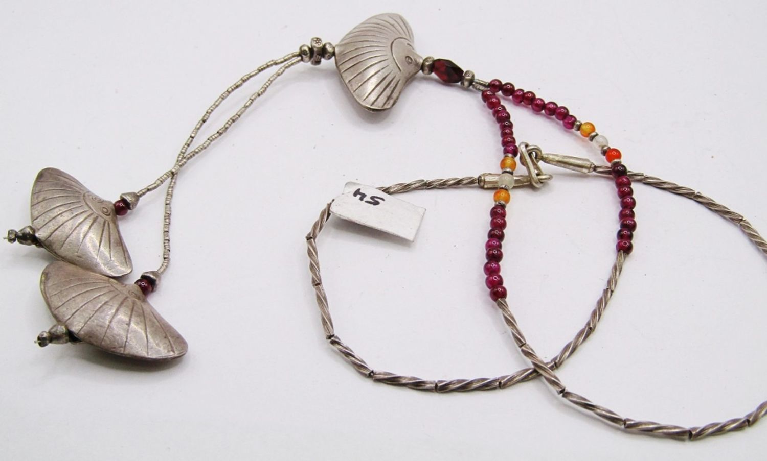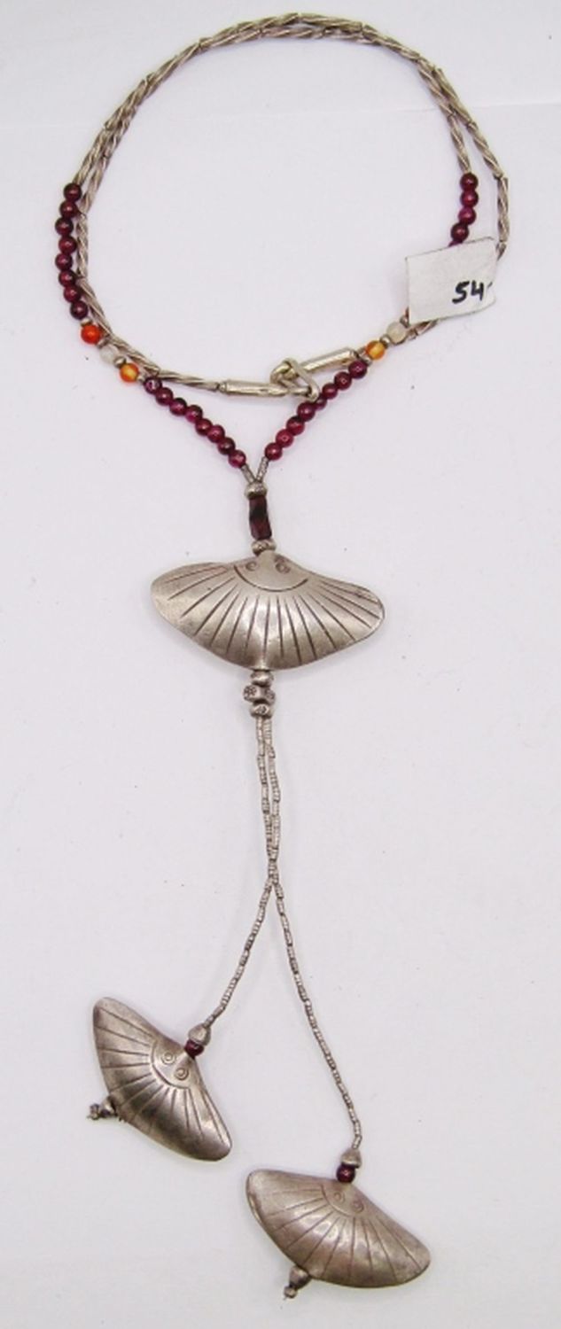 TONED STONES ALONG WITH STERLING TASSLE PENDANT-TOTAL 16 DWT