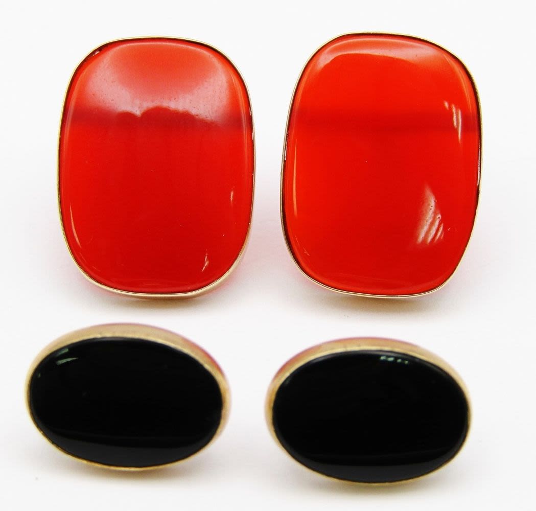 (2) 14k GOLD EARRING SETS - BLACK ONYX &
