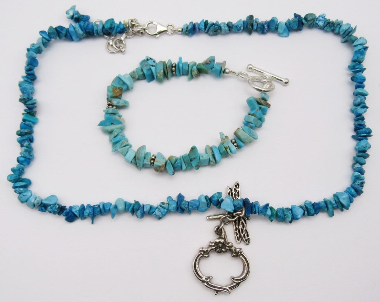 (1)19 INCH NECKALCE WITH DRAGONFLY PENDANT & (1)7.25 INCH BRACELET WITH 925 SPACERS AND TOGGLE CLASP-TOTAL 20 DWT