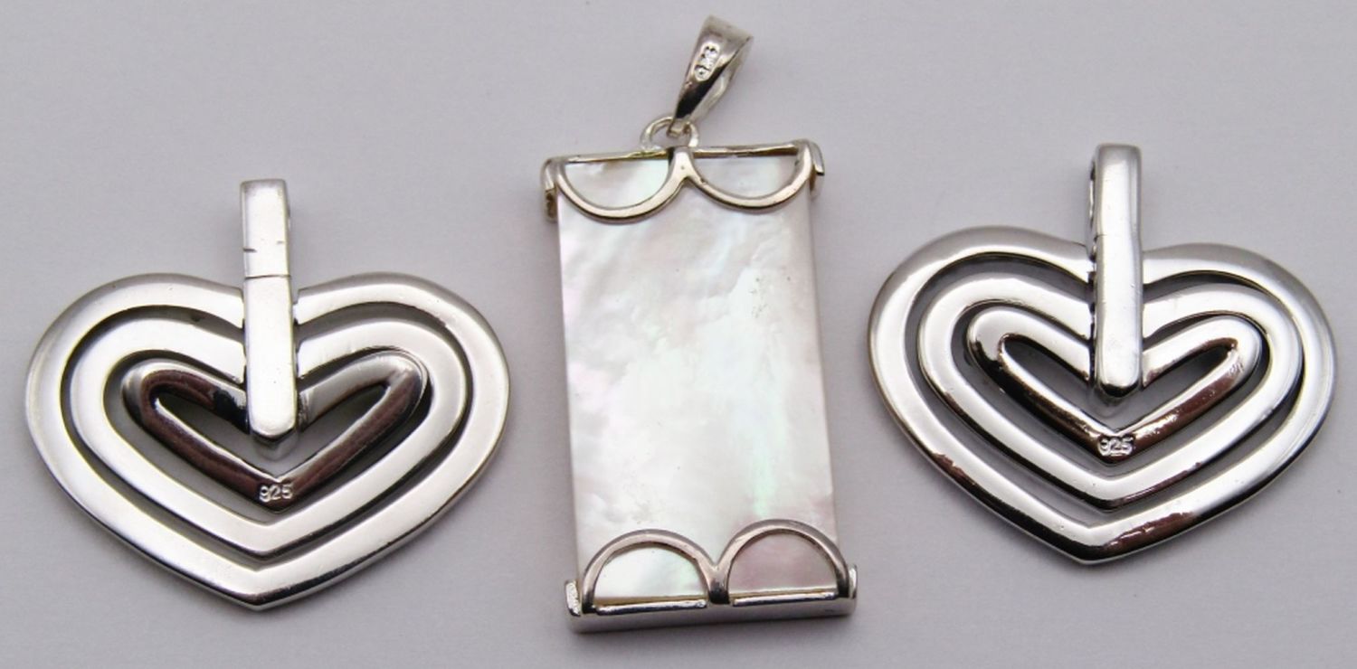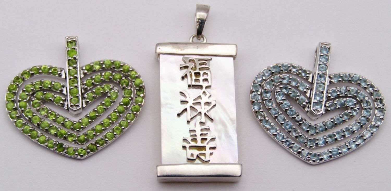 WITH MOTHER OF PEARL ACCENT & (2)HEARTS WITH GREEN AND BABY BLUE STONES-TOTAL 11 DWT