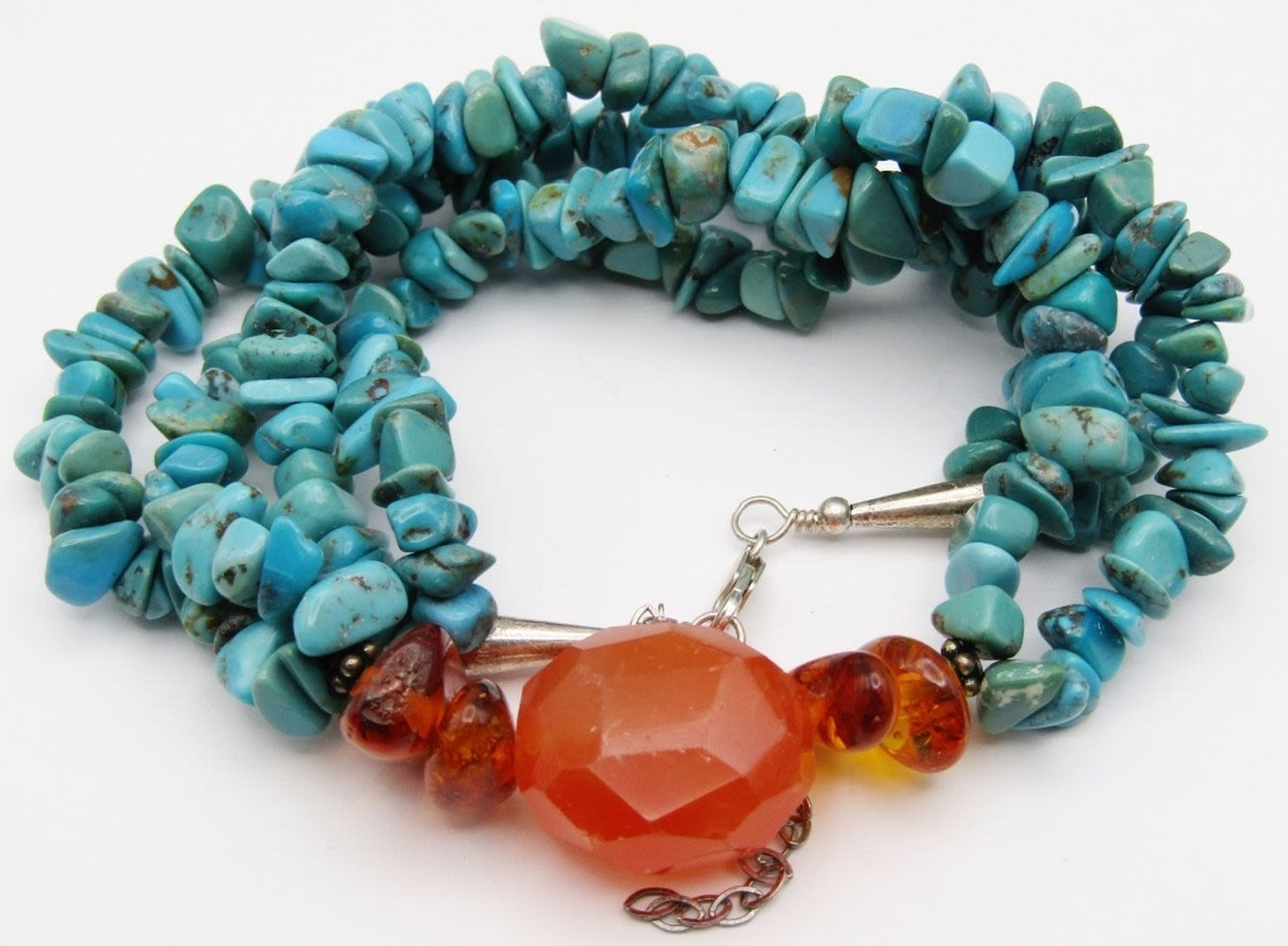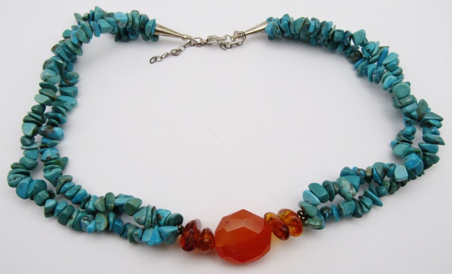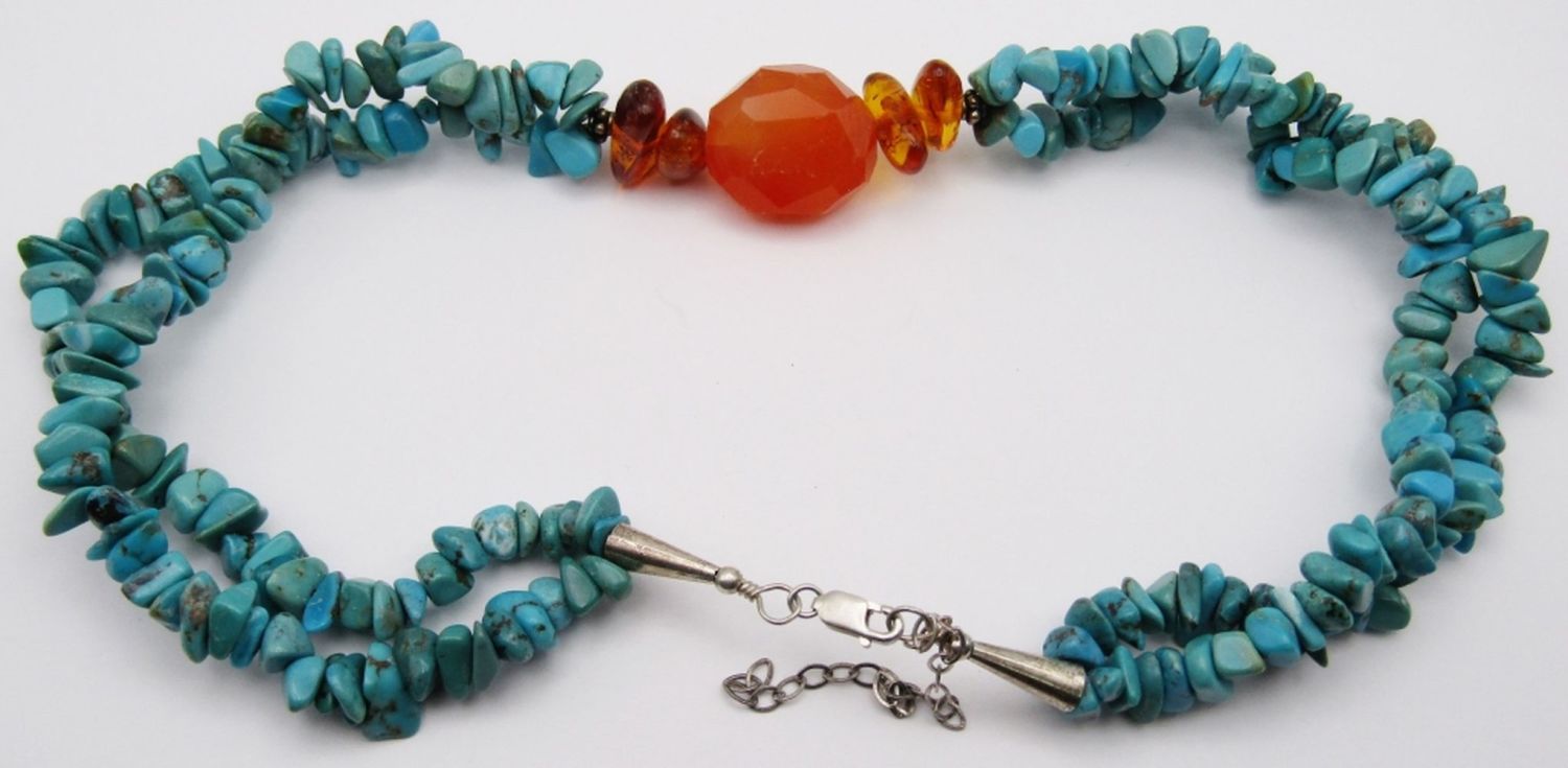 BEADED NECKLACE WITH BALTIC AMBER STONE ACCENTS-MEASURES 18.5 INCHES