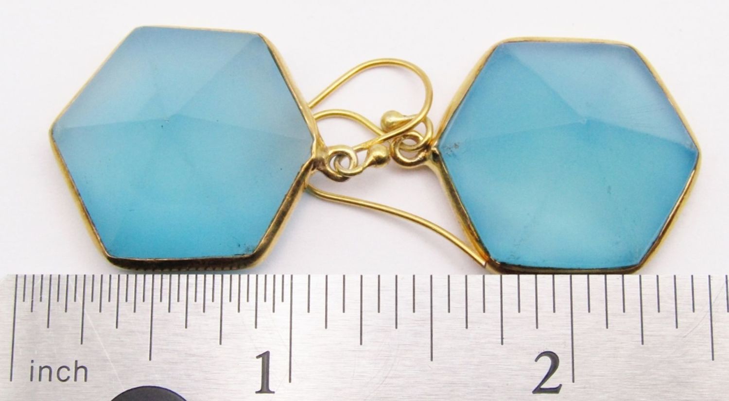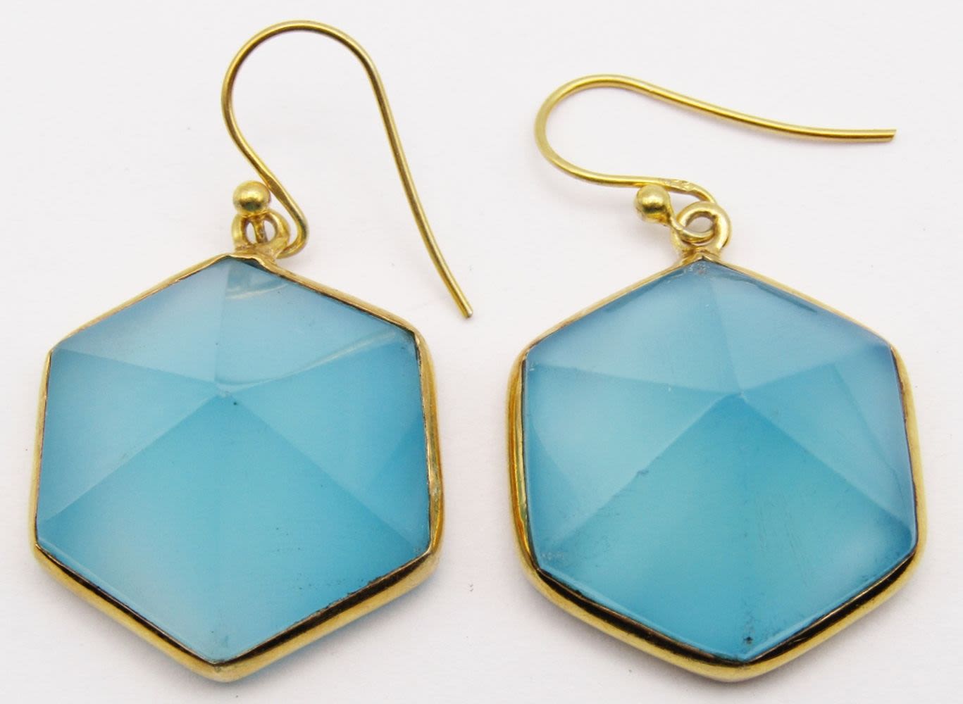 EARRINGS WITH 3-D GEOMETRIC TEAL CENTER