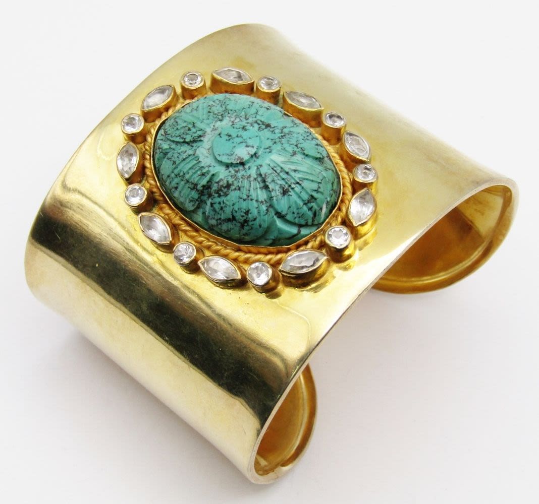 TURQUOISE CENTER STONE-CLEAR STONE AROUND BORDER-MEASURES 7.5 INCHES WITH GAP-TOTAL 40 DWT