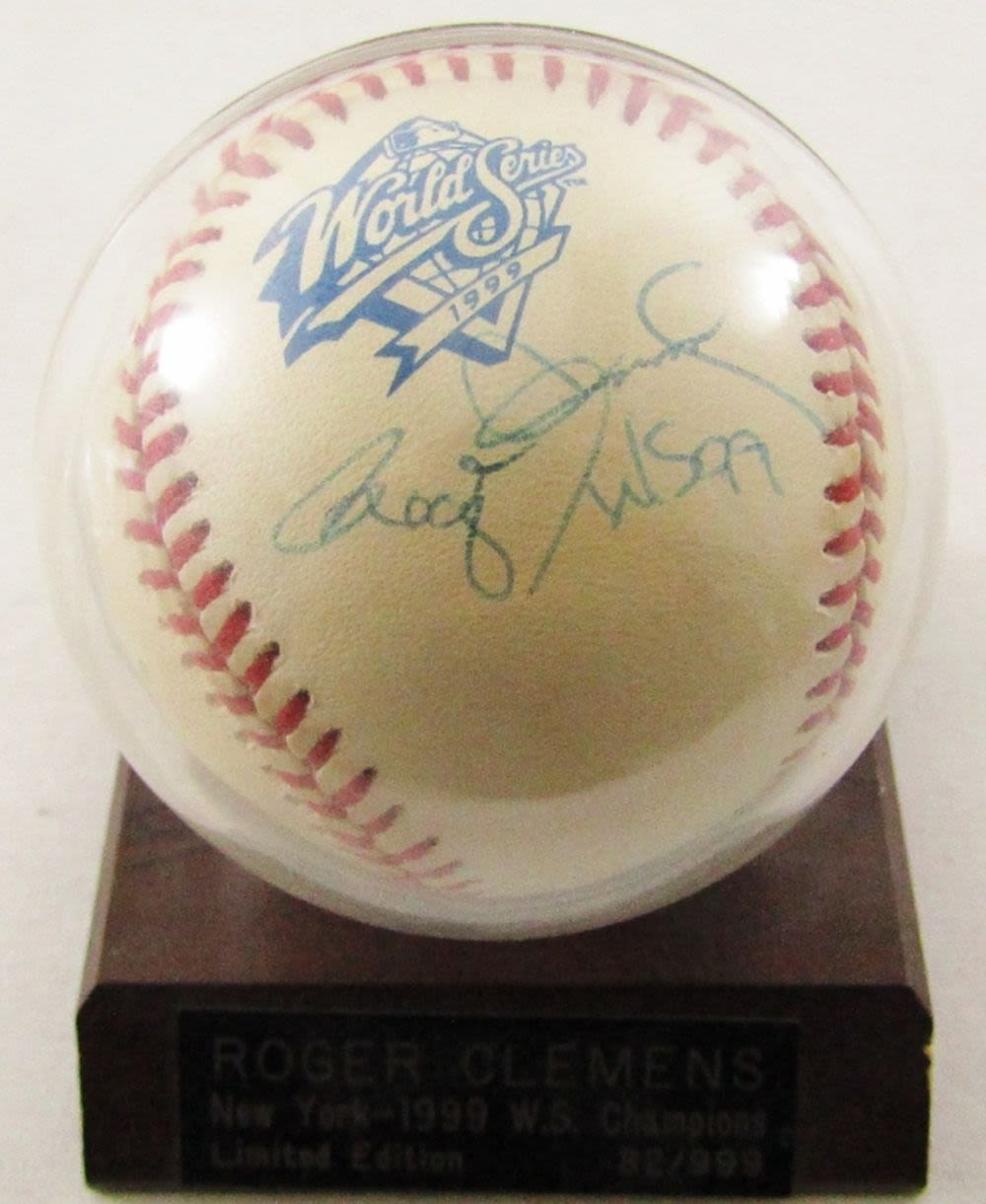 NO COA – HOLOGRAPH STICKER “CLEMENS 0002839” #82/999 – OFFCIAL BALL 1999 WORLD SERIES