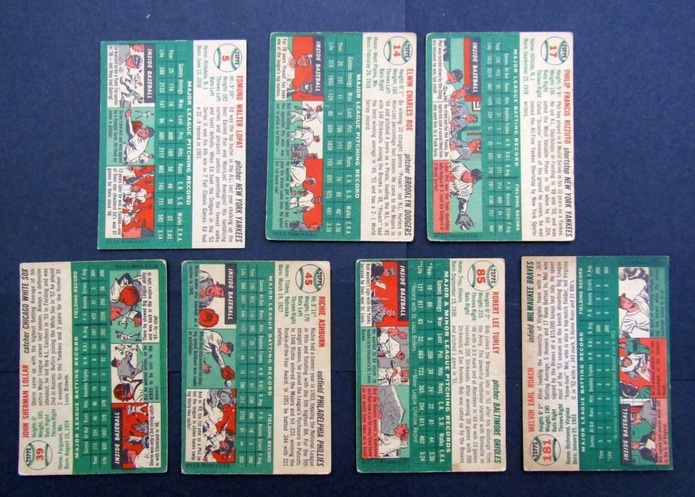 #5 LOPAT, #14 ROE, #17 RIZZUTO, #39 LOLLAR, #45 ASHBURN, #85 TURLEY, #181 ROACH – VGEX / EX