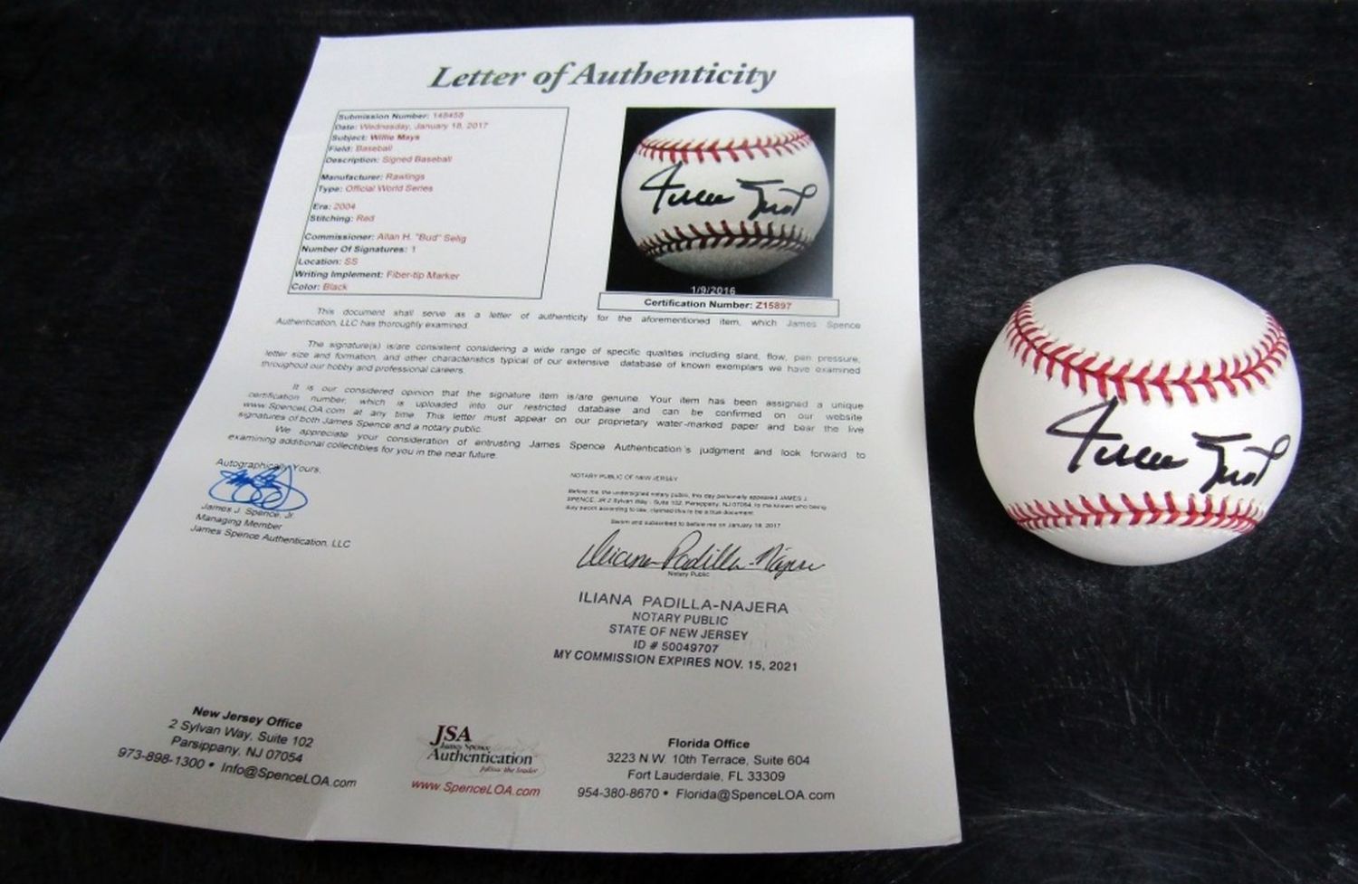 SIGNED WORLD SERIES BASEBALL with JSA CERTIFICATE