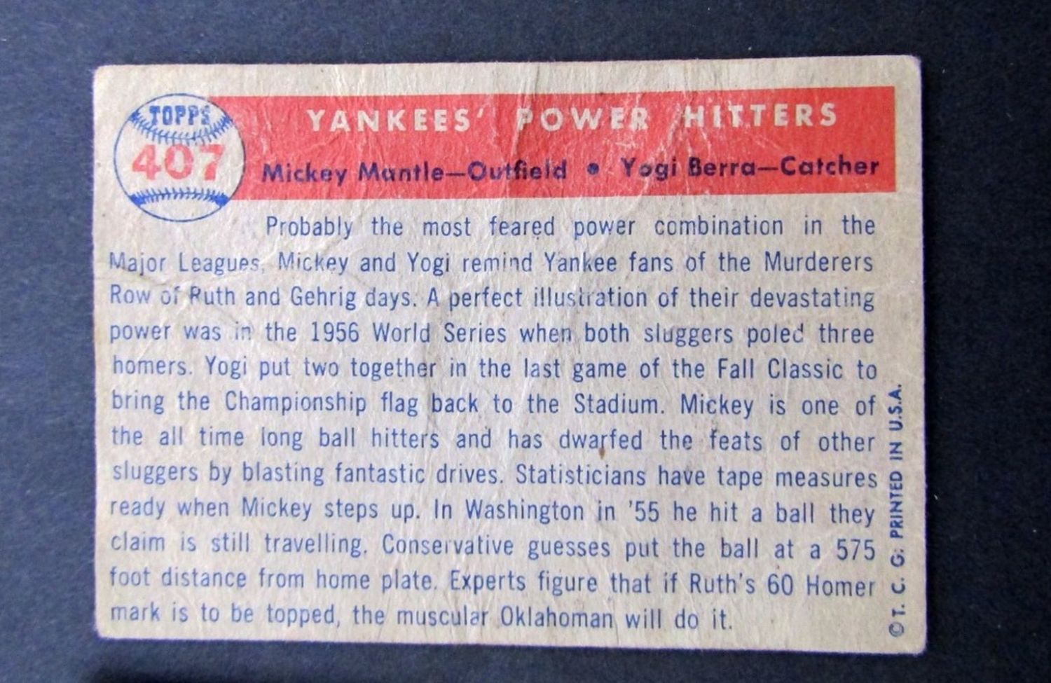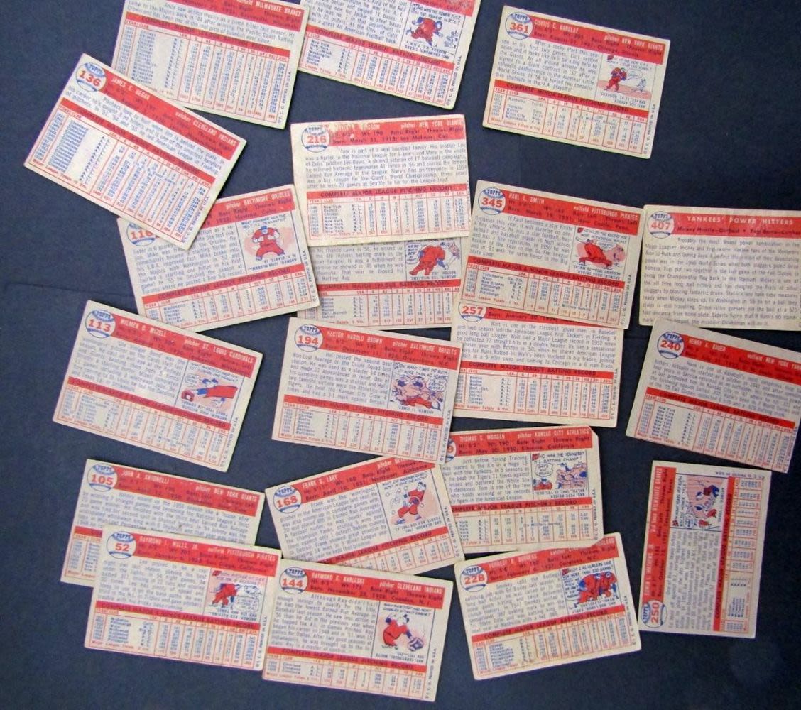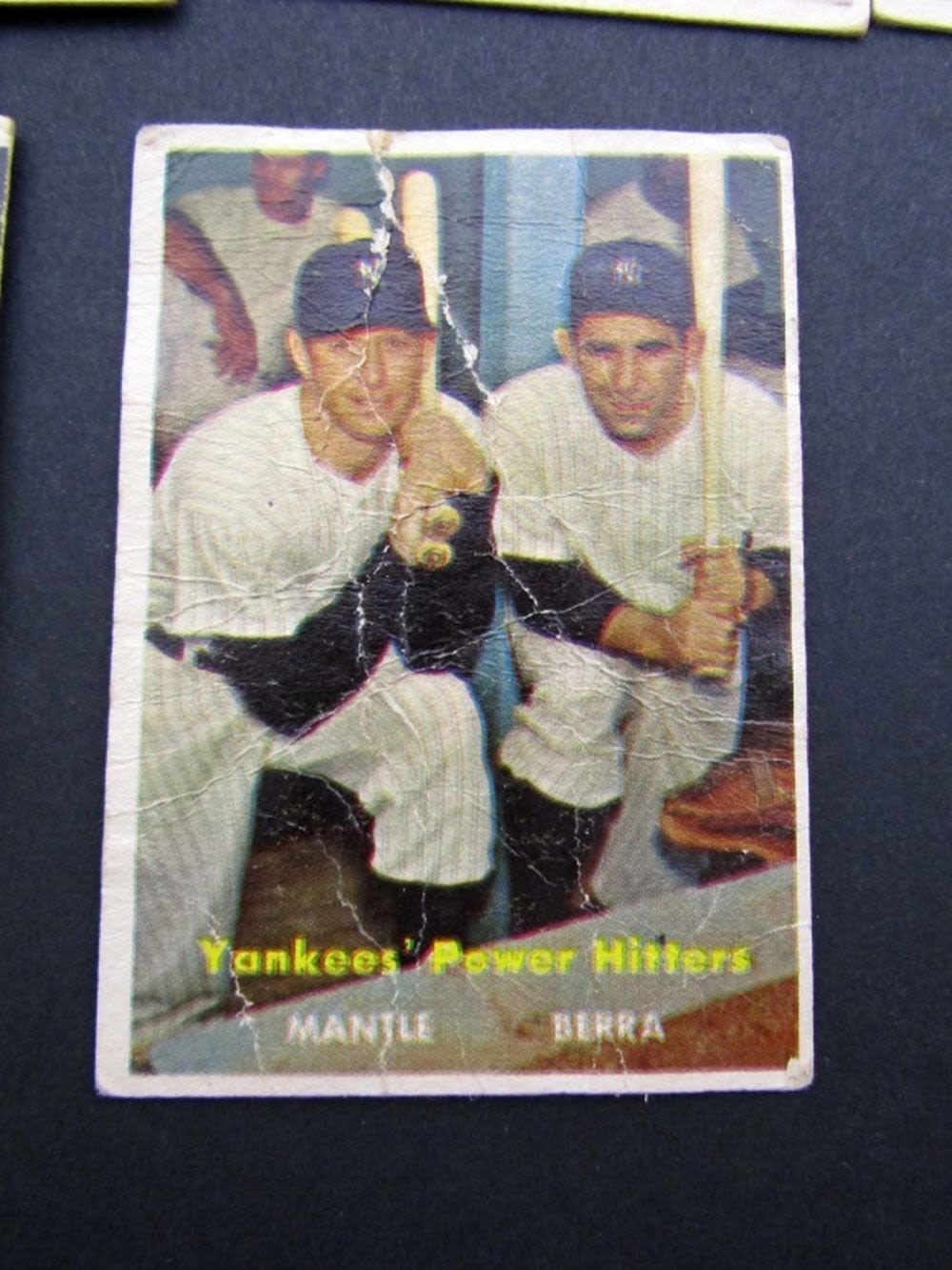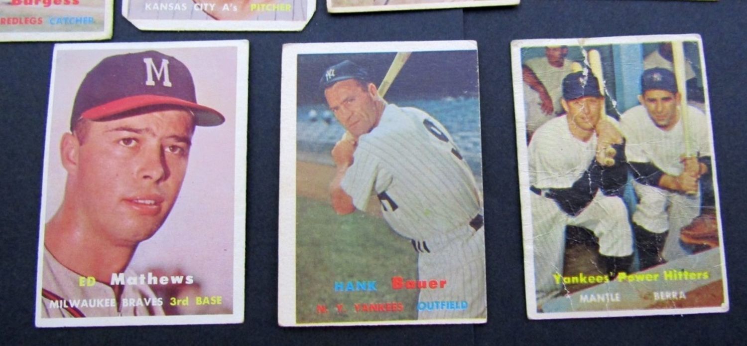 #407 MANTLE BERRA POOR, #240 BAUER VGEX O/C, #250 MATHEWS VGEX plus (17) OTHER BASEBALL PLAYERS VG/GOOD some VGEX/EX