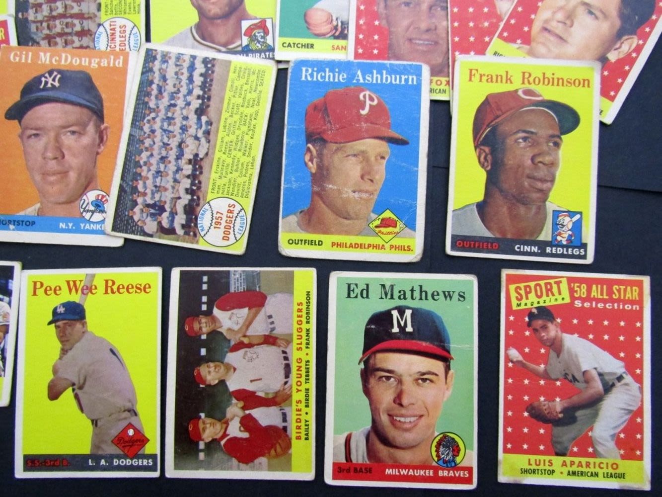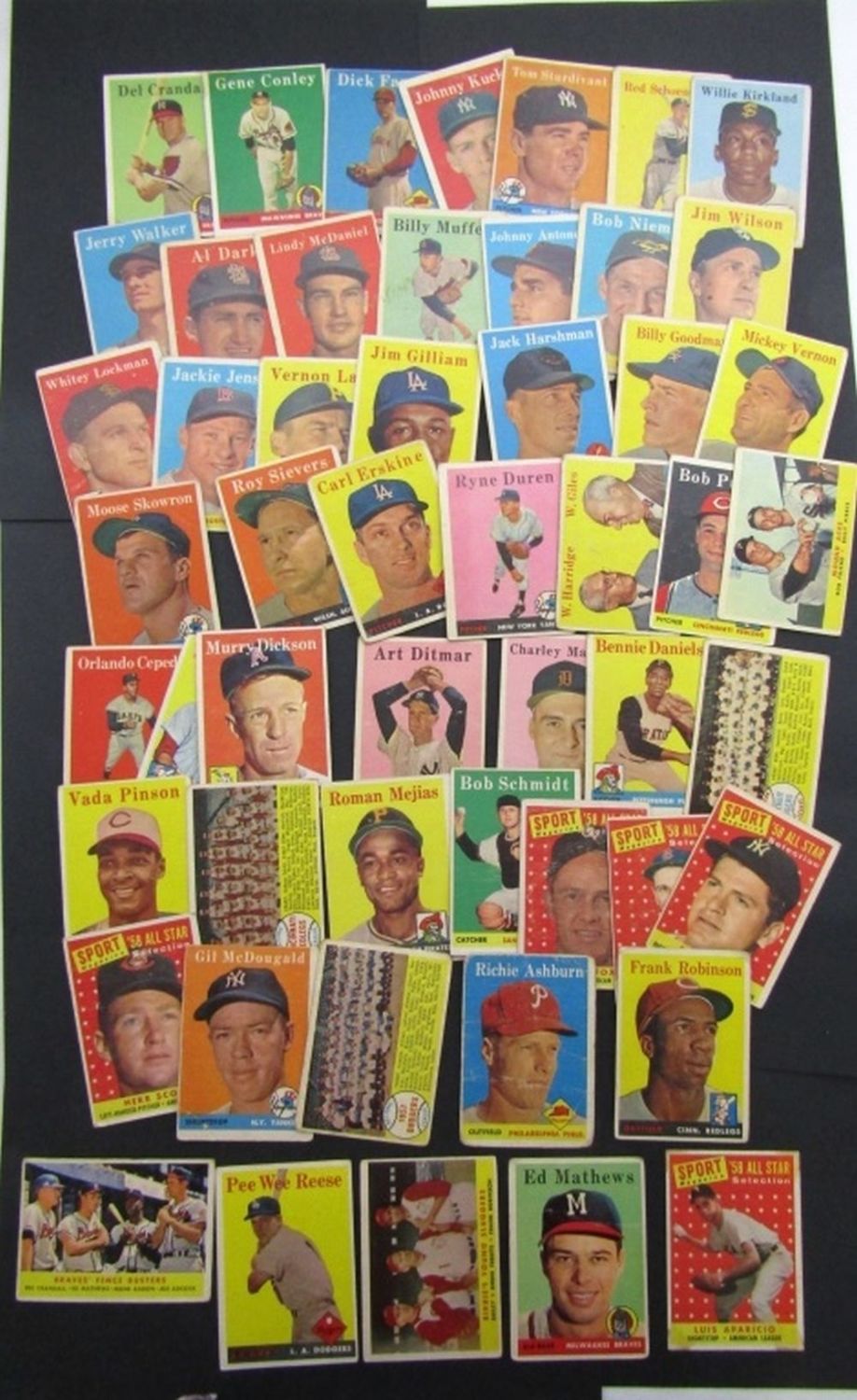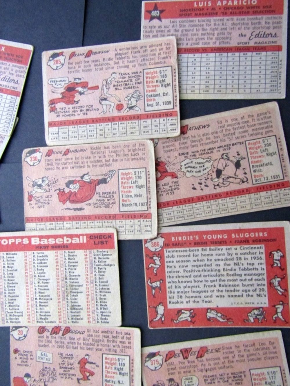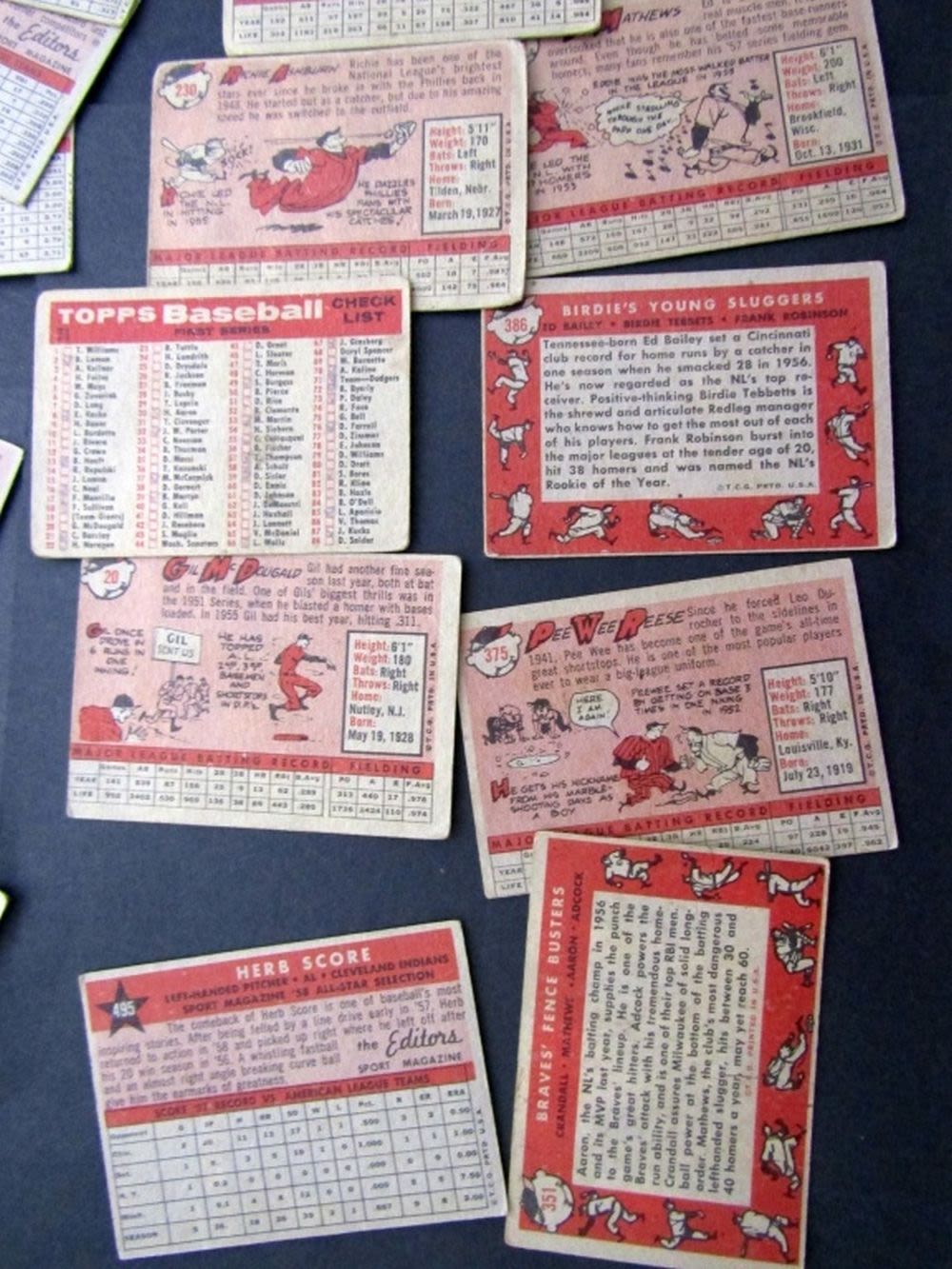 #20 McDOUGALD, #71 DODGERS, #285 FRANK ROBINSON, #51 FENCE BUSTERS, #75 REESE, #386 SLUGGERS, #440 MATHEWS, #483 APARICIO plus (43) OTHER BASEBALL PLAYERS – VG//GOOD some VGEX