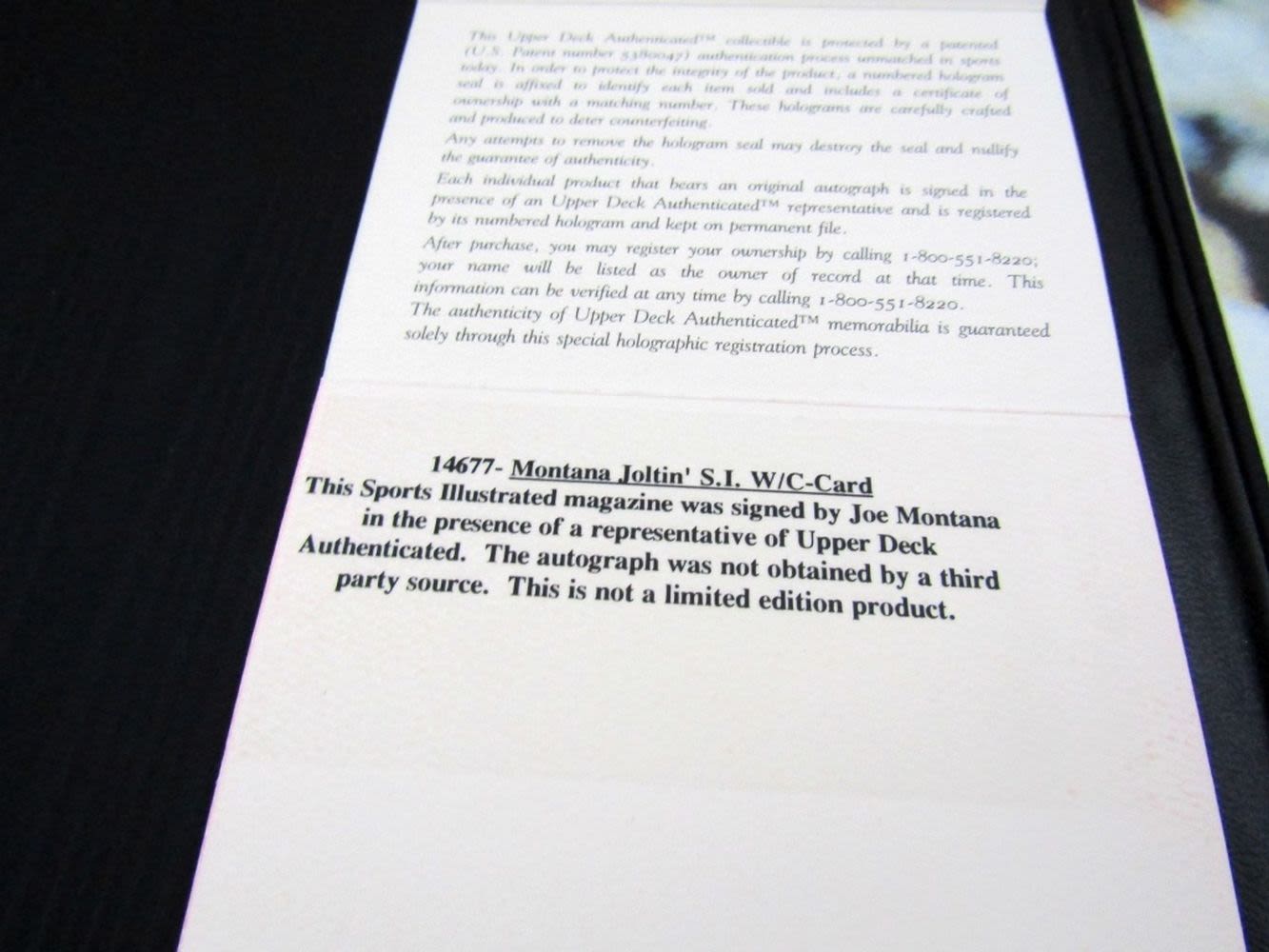 MONTANA JOLTIN’ SPORTS ILLUSTRATED w/CARD – AUTOGRAPHED in front of UPPER DECK w/COA