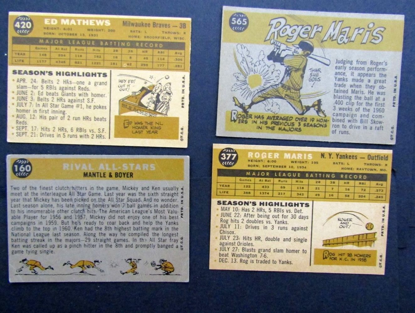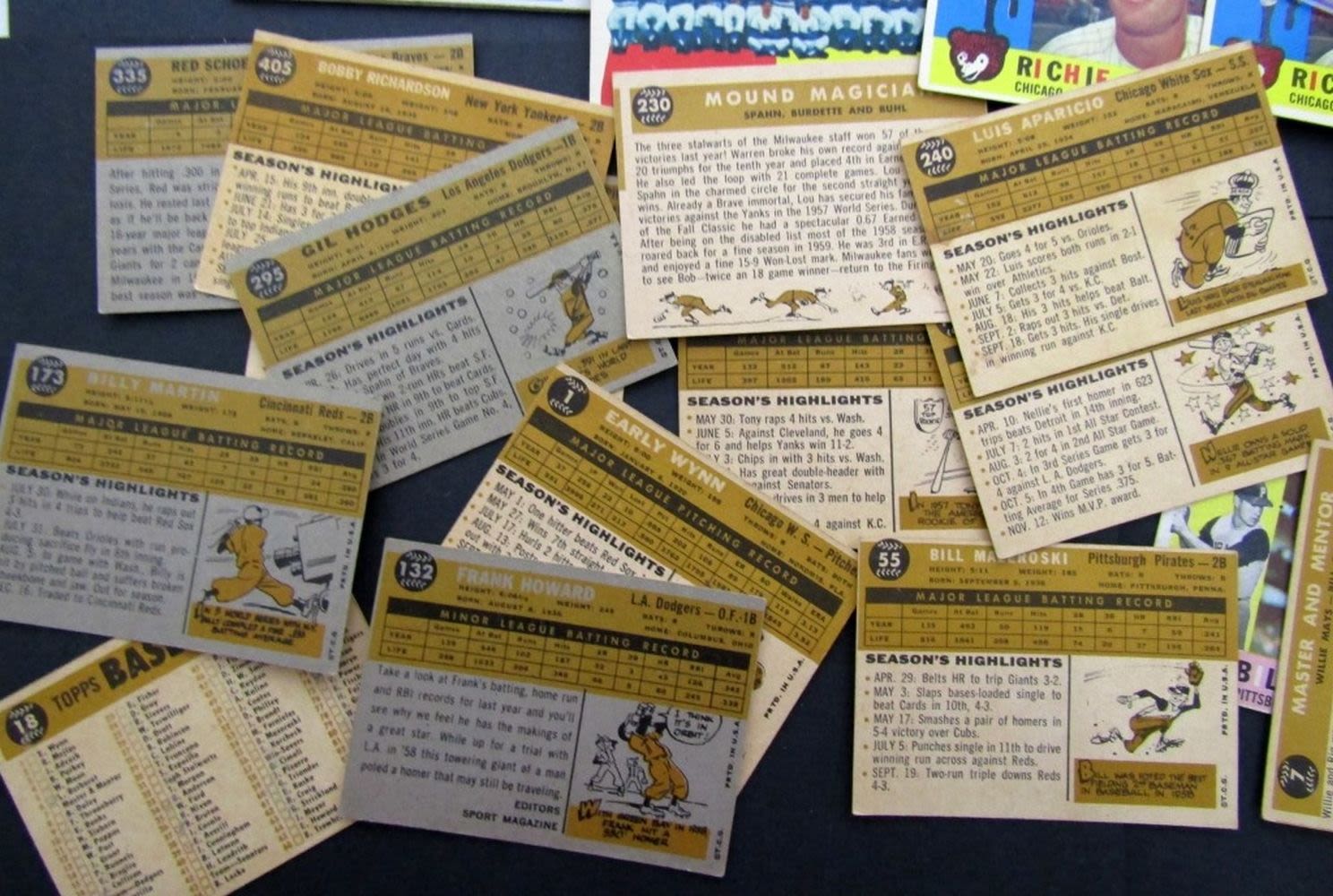 includes #1 WYNN, #7 MAYS/RIGNEY, #10 BANKS, #18 DODGERS, (2) #35 WHITEY FORD, #50 KALINE, (2) #55 MAZEROSKI, #83 KUBEK, #100 FOX, #132 HOWARD ROOKIE, #160 MANTLE/BOYER, #173 MARTIN, #227 STENGEL, #230 MOUND MAGIC, #240