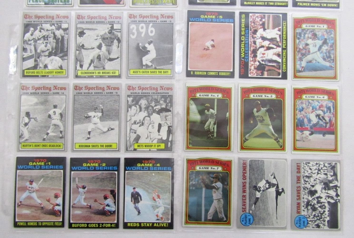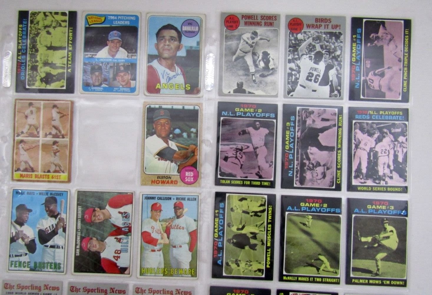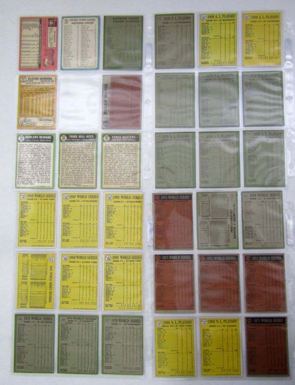 1962 TOPPS #313 MARIS, 1967 TOPPS #423 MAYS/McCOVEY, plus 1970-1972 TOPPS WORLD SERIES CARDS – MOSTLY EX -VGEX