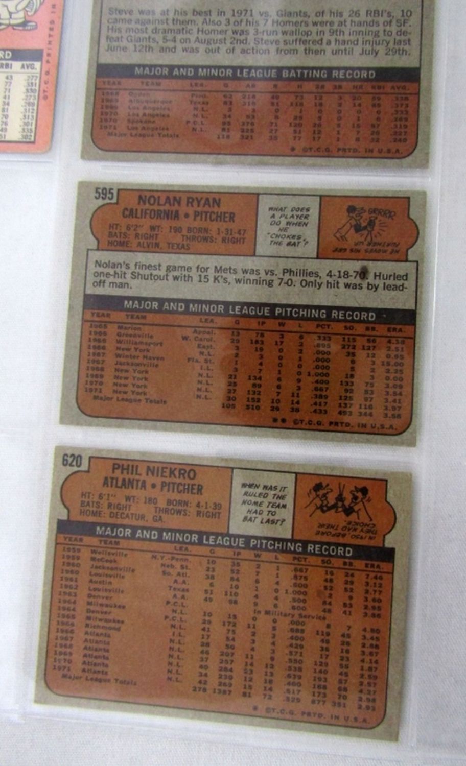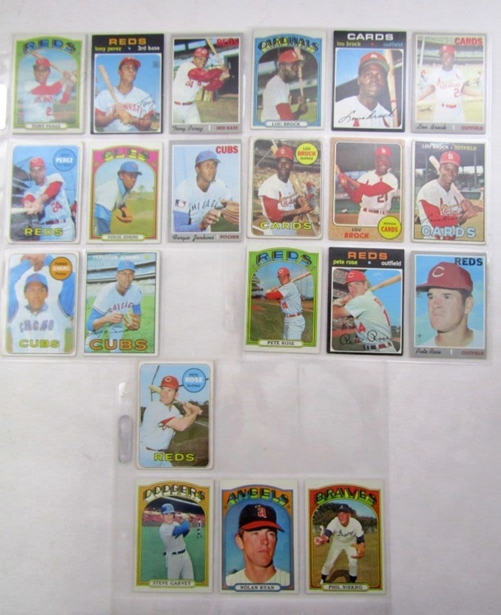 PETE ROSE, LOU BROCK, TONY PEREZ, FERGIE JENKINS, 1972 TOPPS RYAN, GARVEY, NIEKRO (nice ex++) – REST EX/VGEX