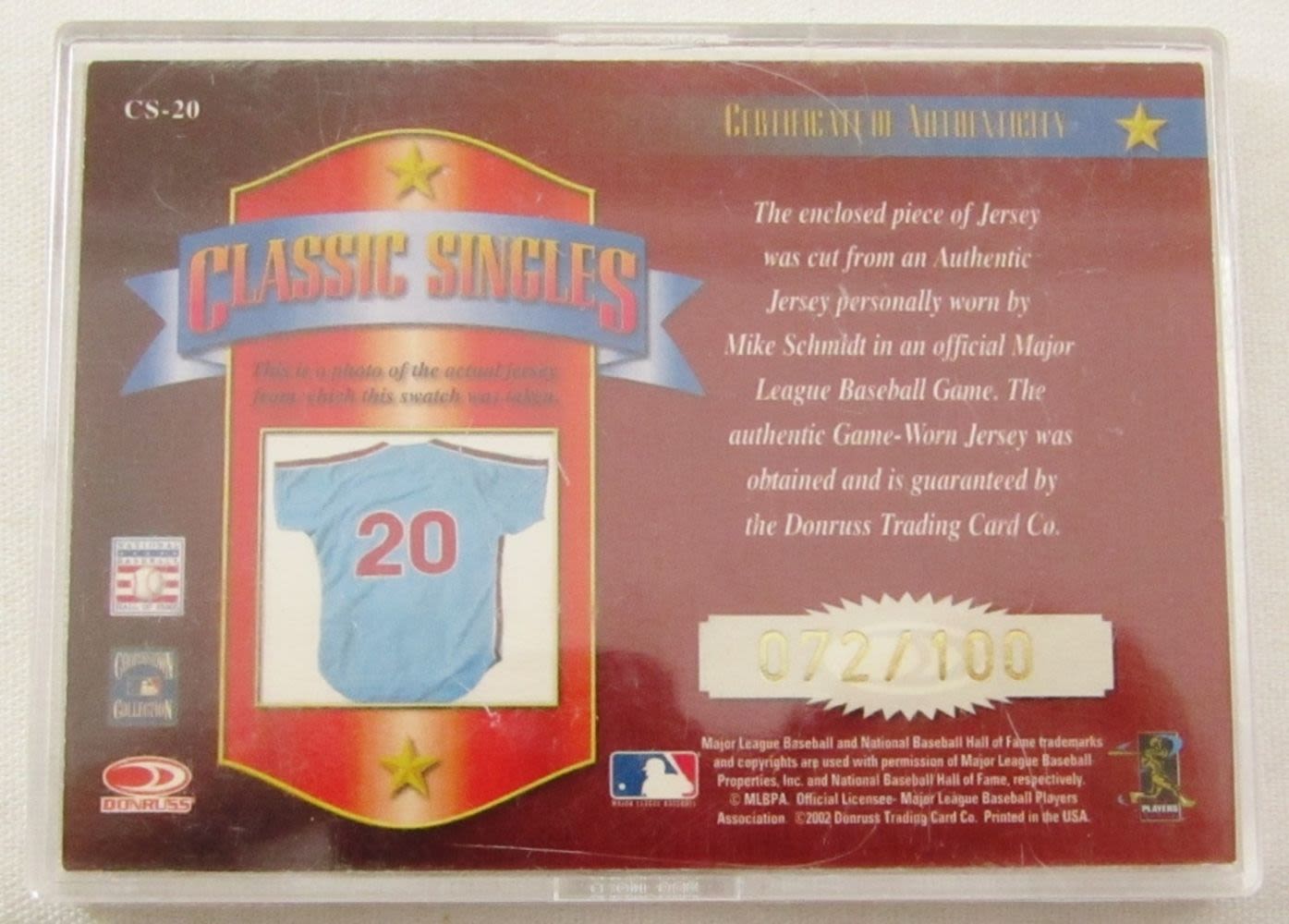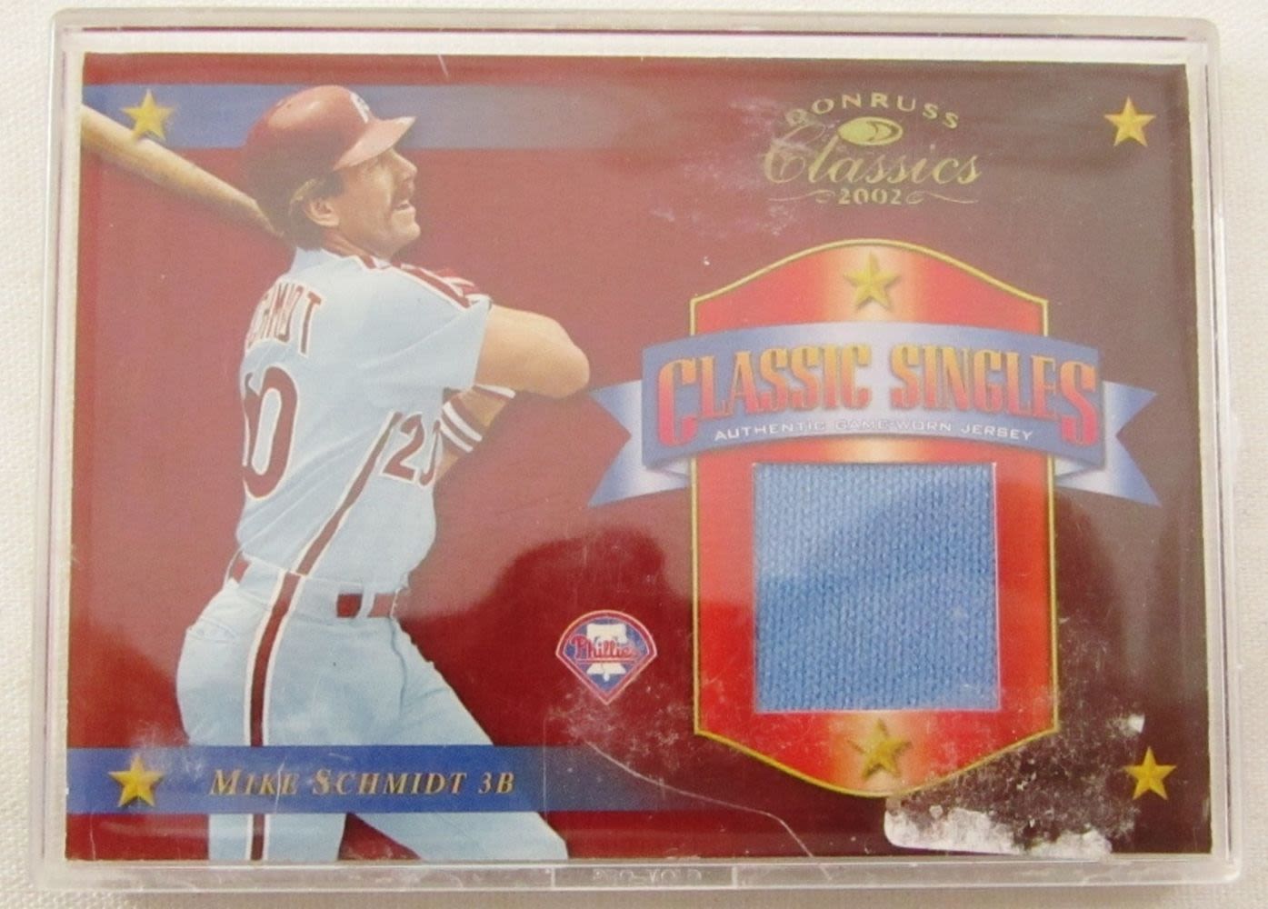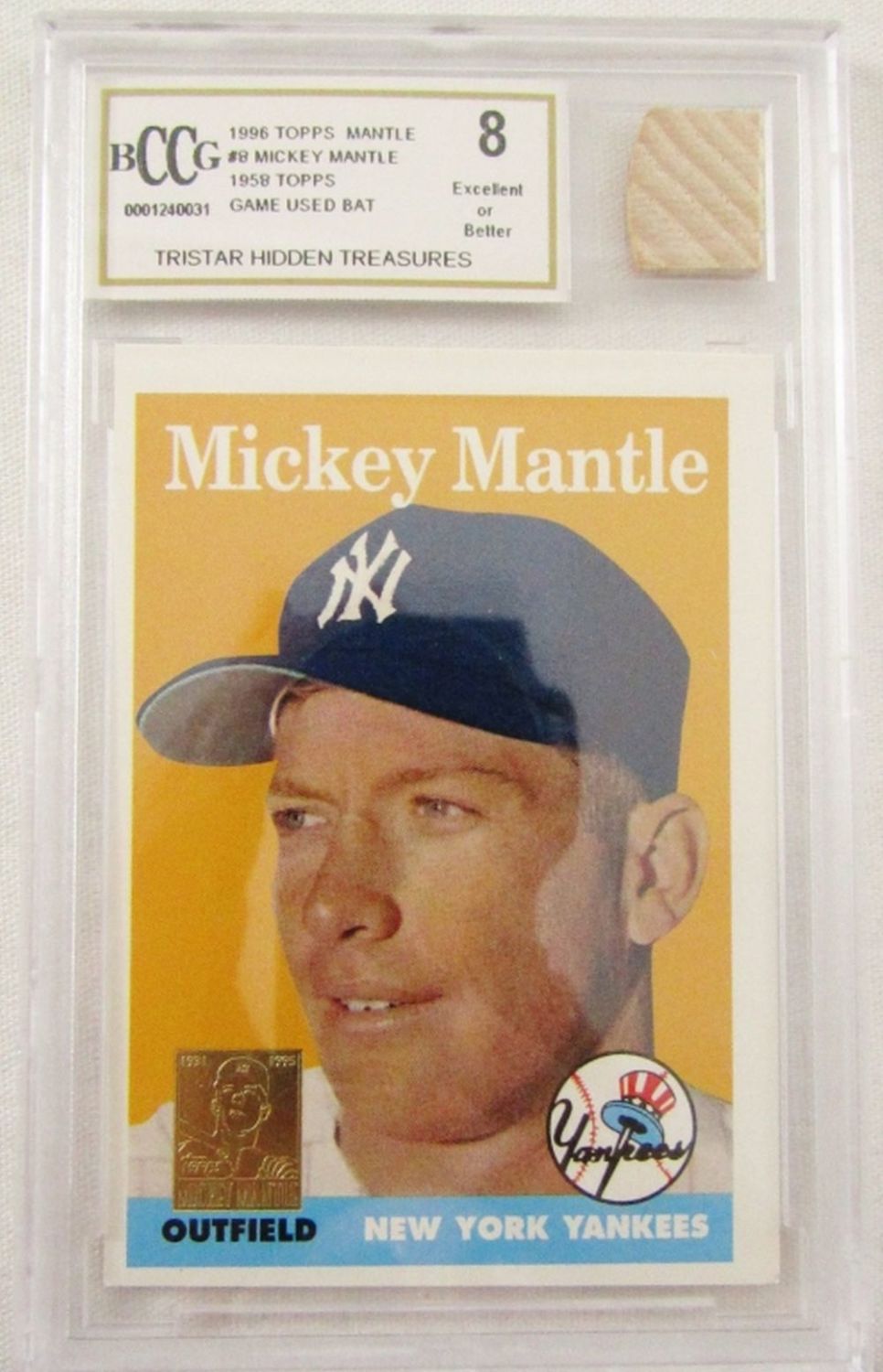 1996 TOPPS MANTLE TRISTAR HIDDEN TREASURES BCCG 8; DIAMOND CUT DON MATTINGLY JERSEY CARD; CLASSIC SINGLE MIKE SCHMIDT JERSEY CARD; MARK GRACE LEAF GAME USED BAT