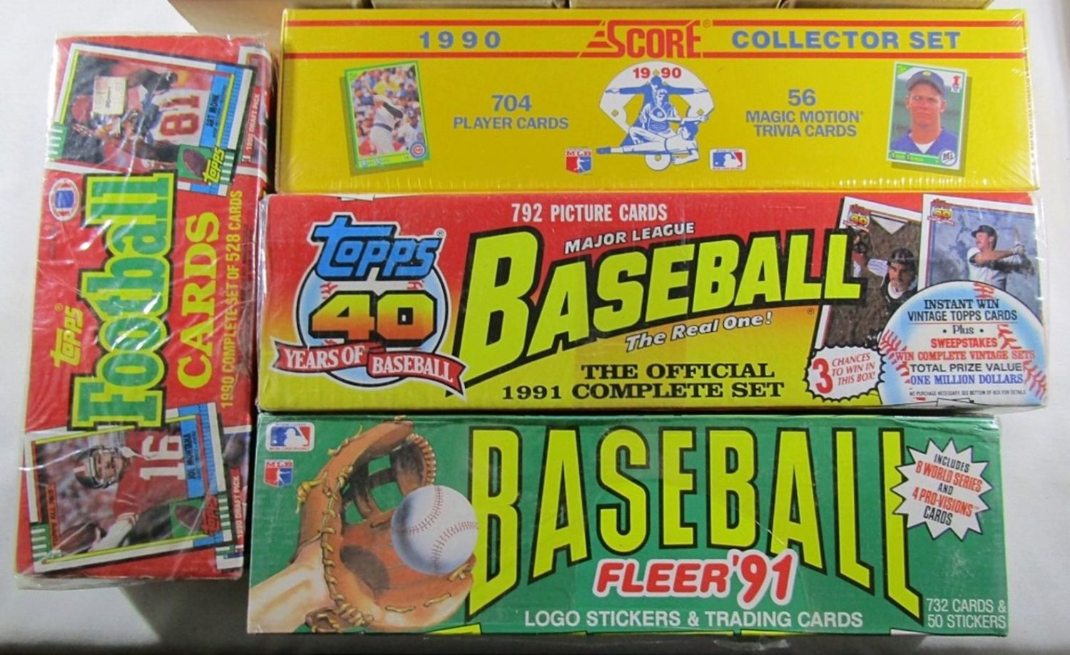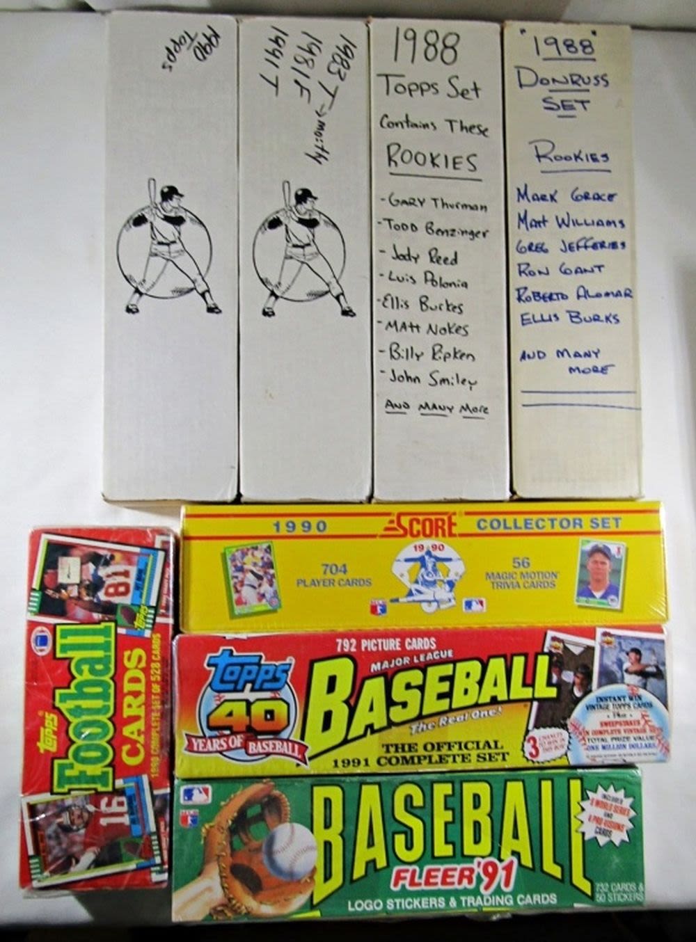 800 ct BOX MIX BASEBALL 1983 TOPPS, 1981 FLEER & 1991 TOPPS; 1990 TOPPS MIX 800ct BOX BASEBALL; 1988 TOPPS & 1988 DONRUSS BASEBALL SETS; 1990 SCORE BASEBALL FACTORY, 1991 FLEER BASEBALL FACTORY, 1991 TOPPS BASEBALL