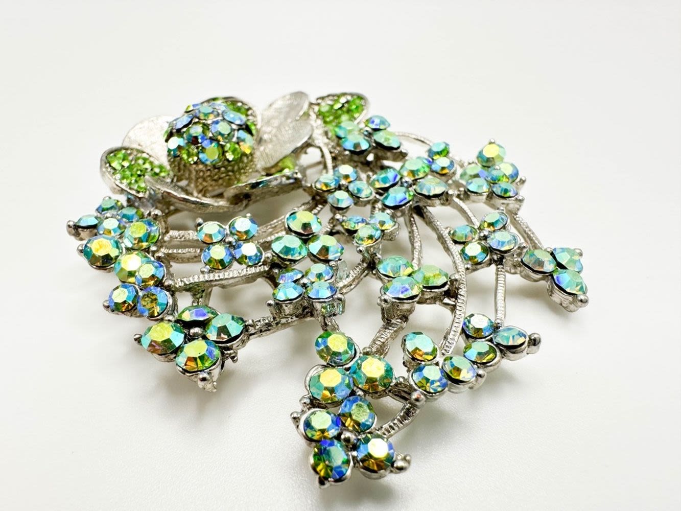 GREEN FLORAL SPRAY BROOCH