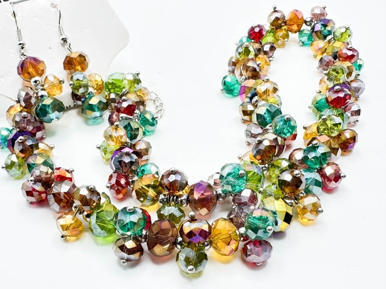 COLORFUL GLASS NECKLACE AND EARRINGS MATCHING SET