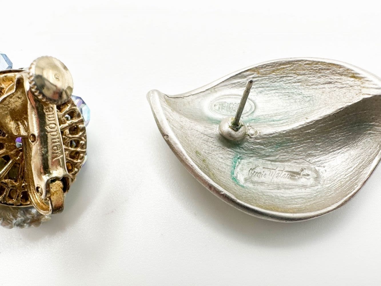 VENDOME SIGNED STONE SET, TRIFARI SIGNED SET, TRIFARI HAS SLIGHT TARNISH ON BACK
