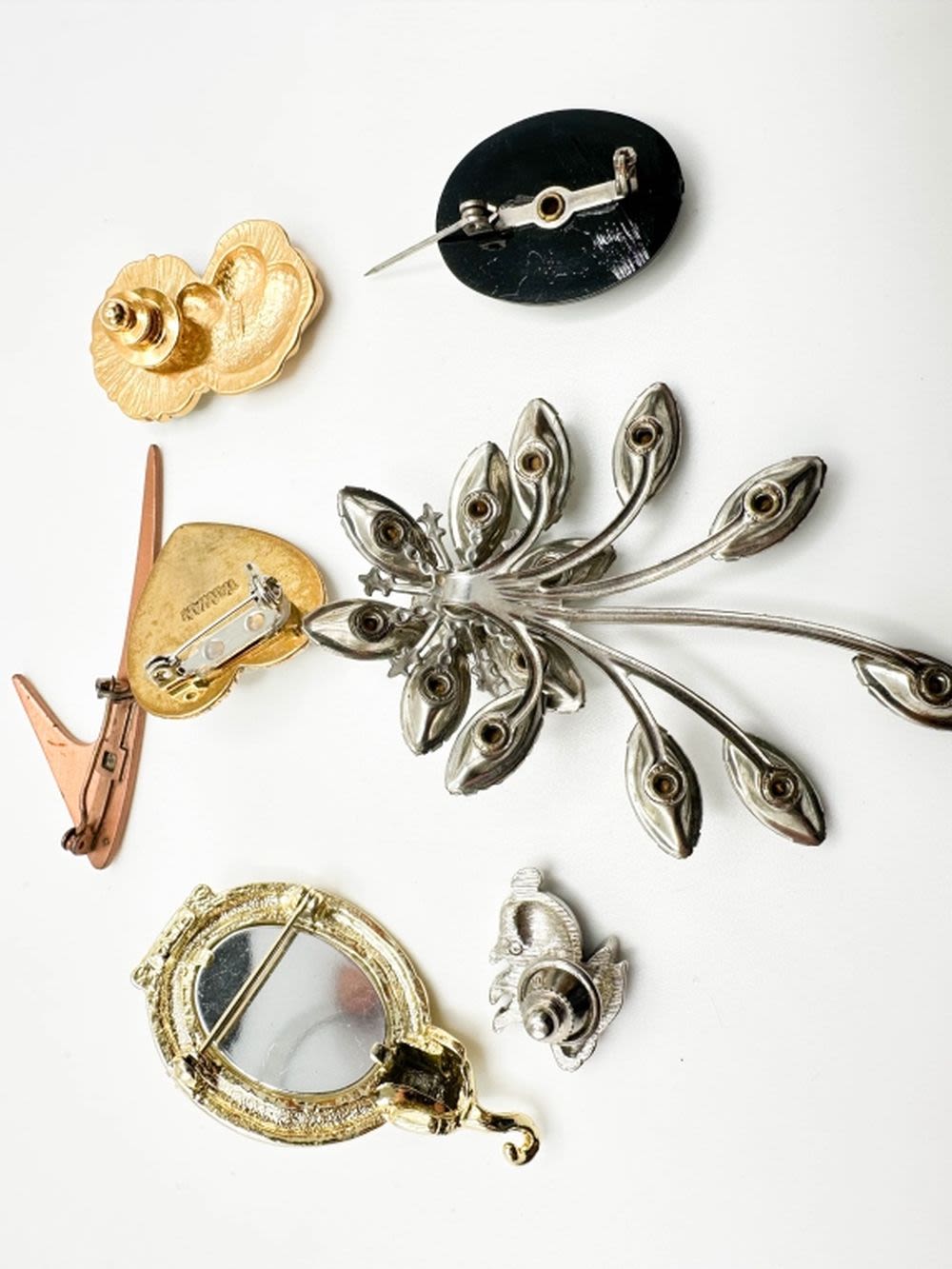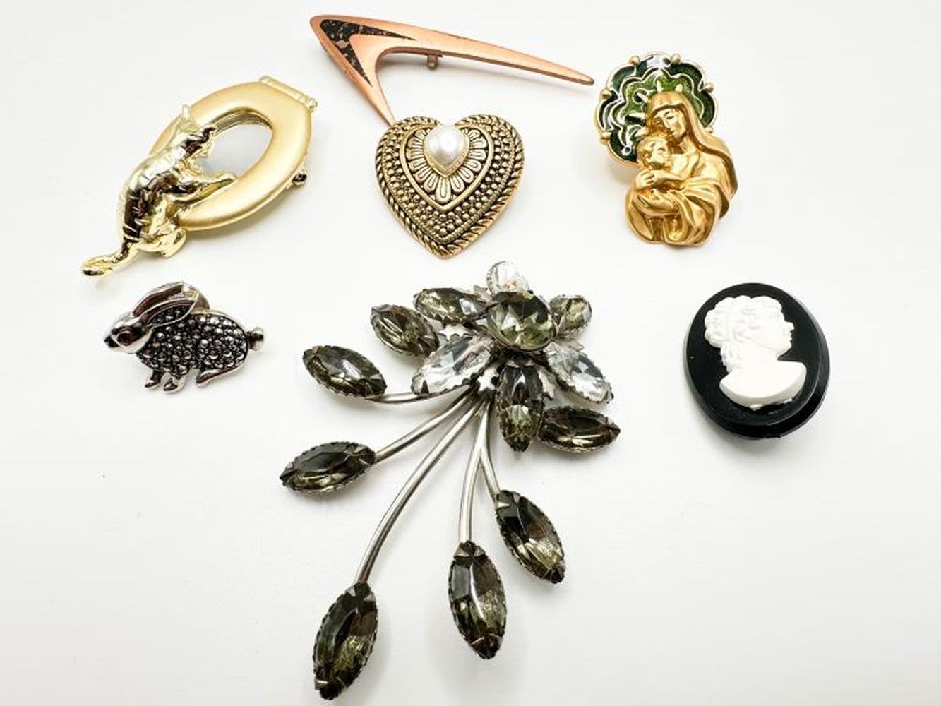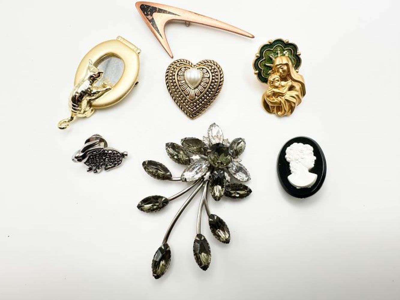 BROOCHES ASSORTMENT, ONE LARGE STONE , HAS NO CLASP , MAY BE A PENDANT ?