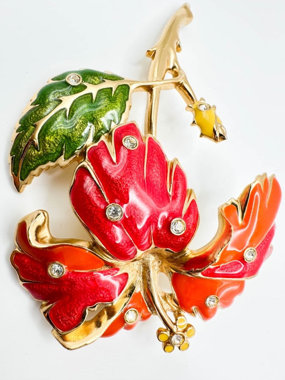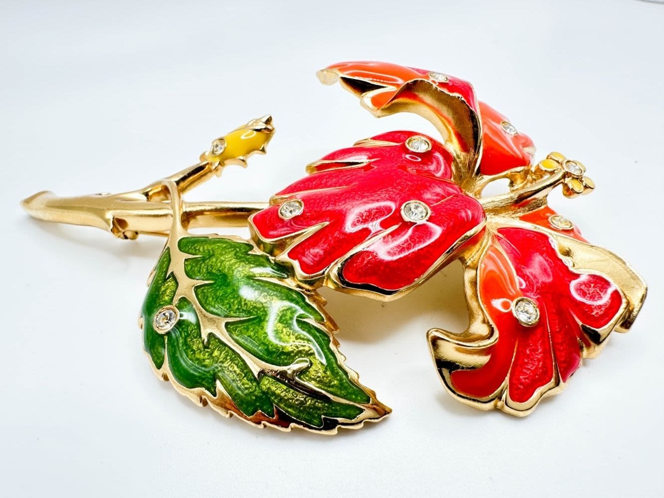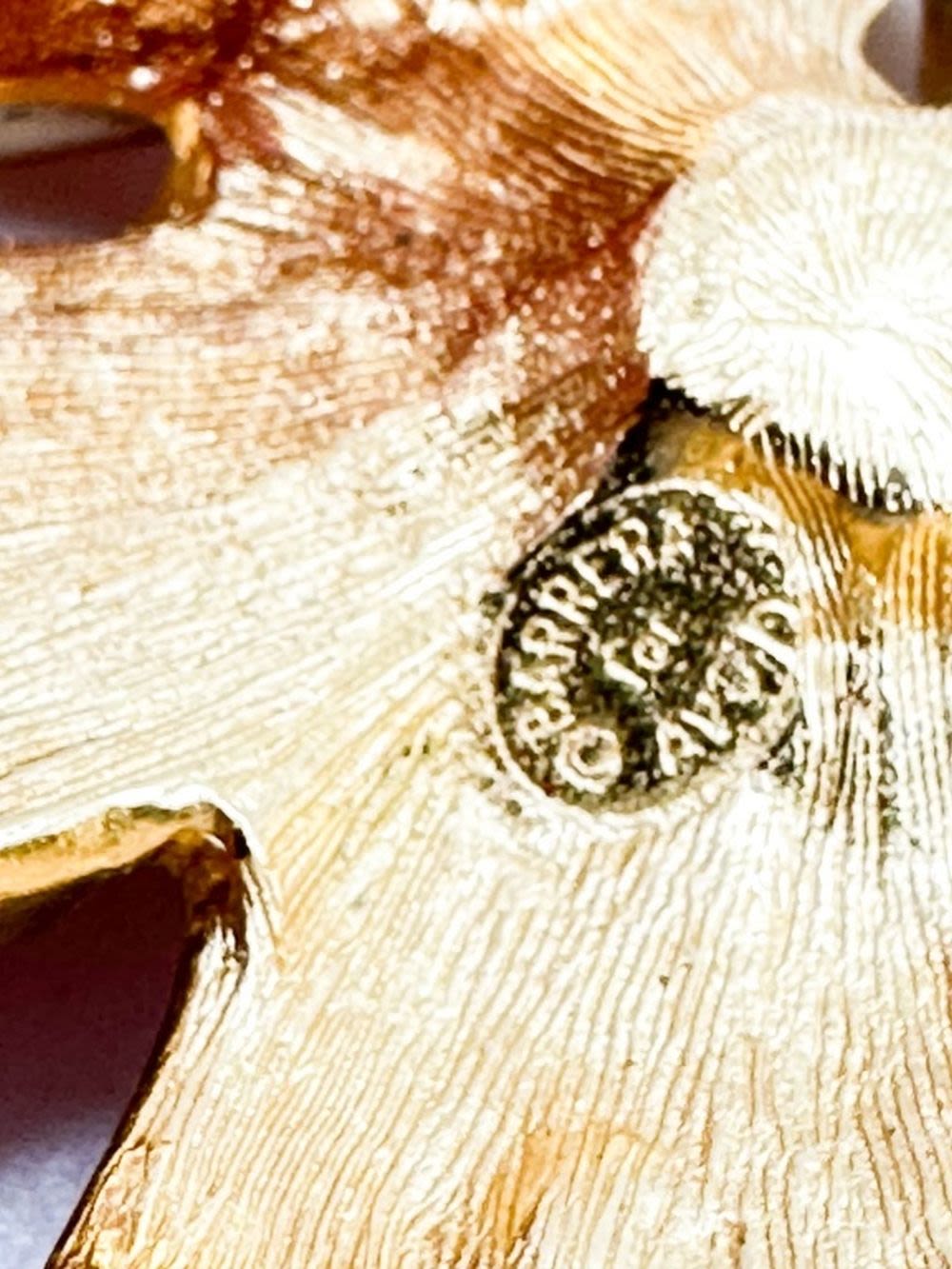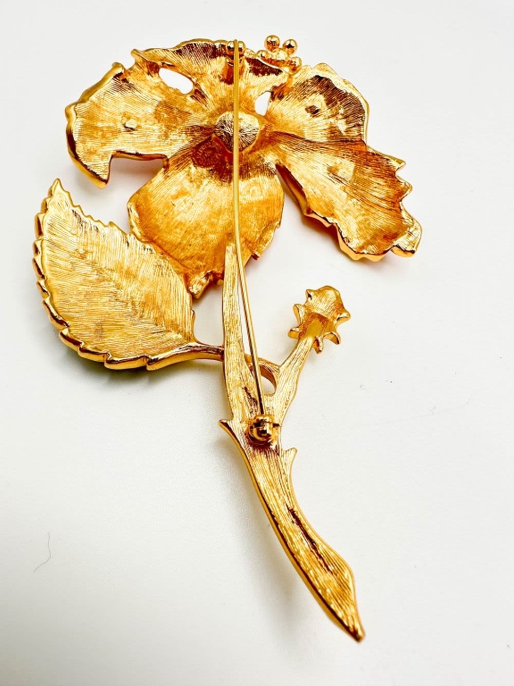 BARARRA FOR AVON , DESIGNER , HUGE FLORAL BROOCH WITH LEAVES IN GOLD TONE