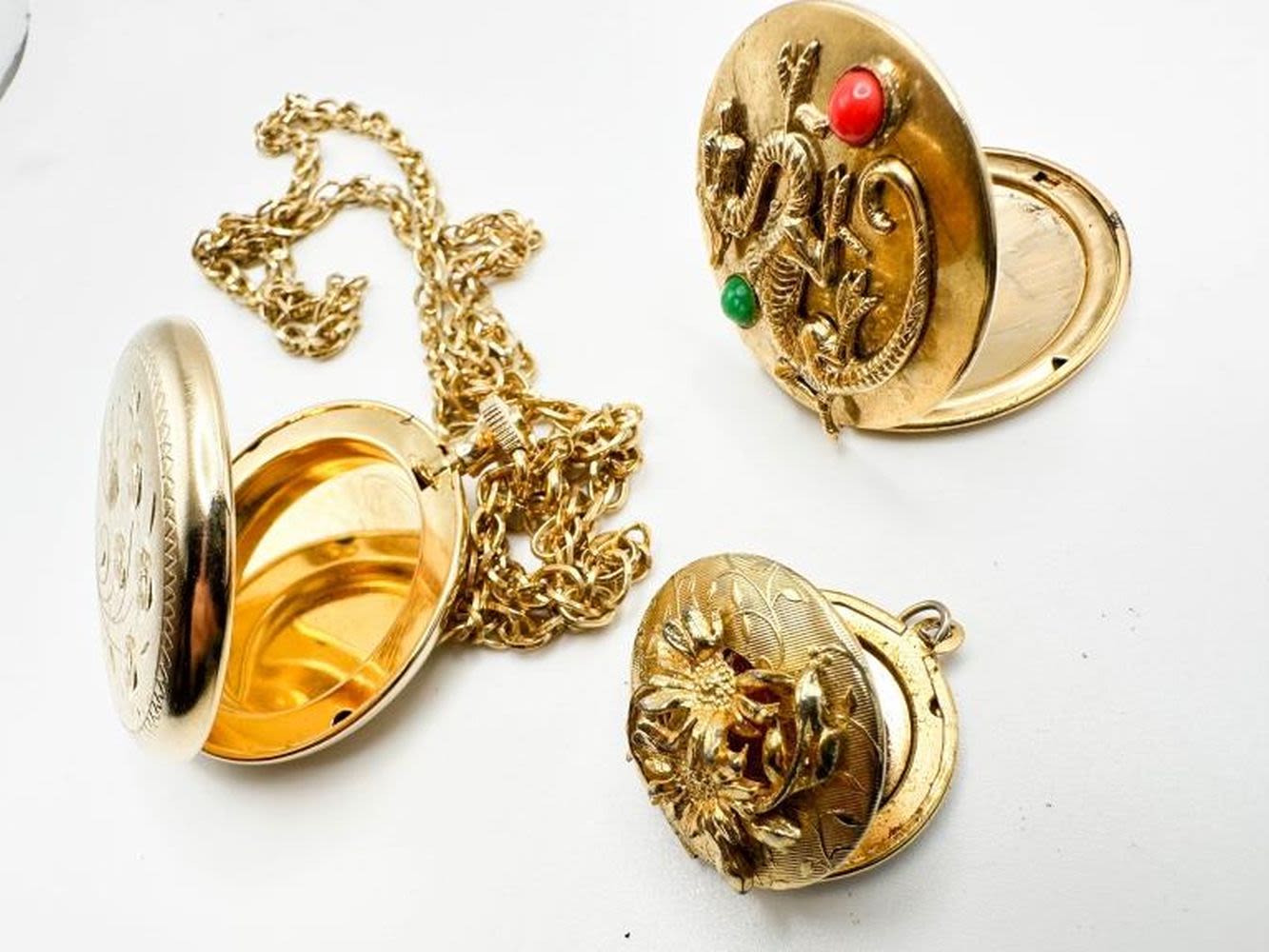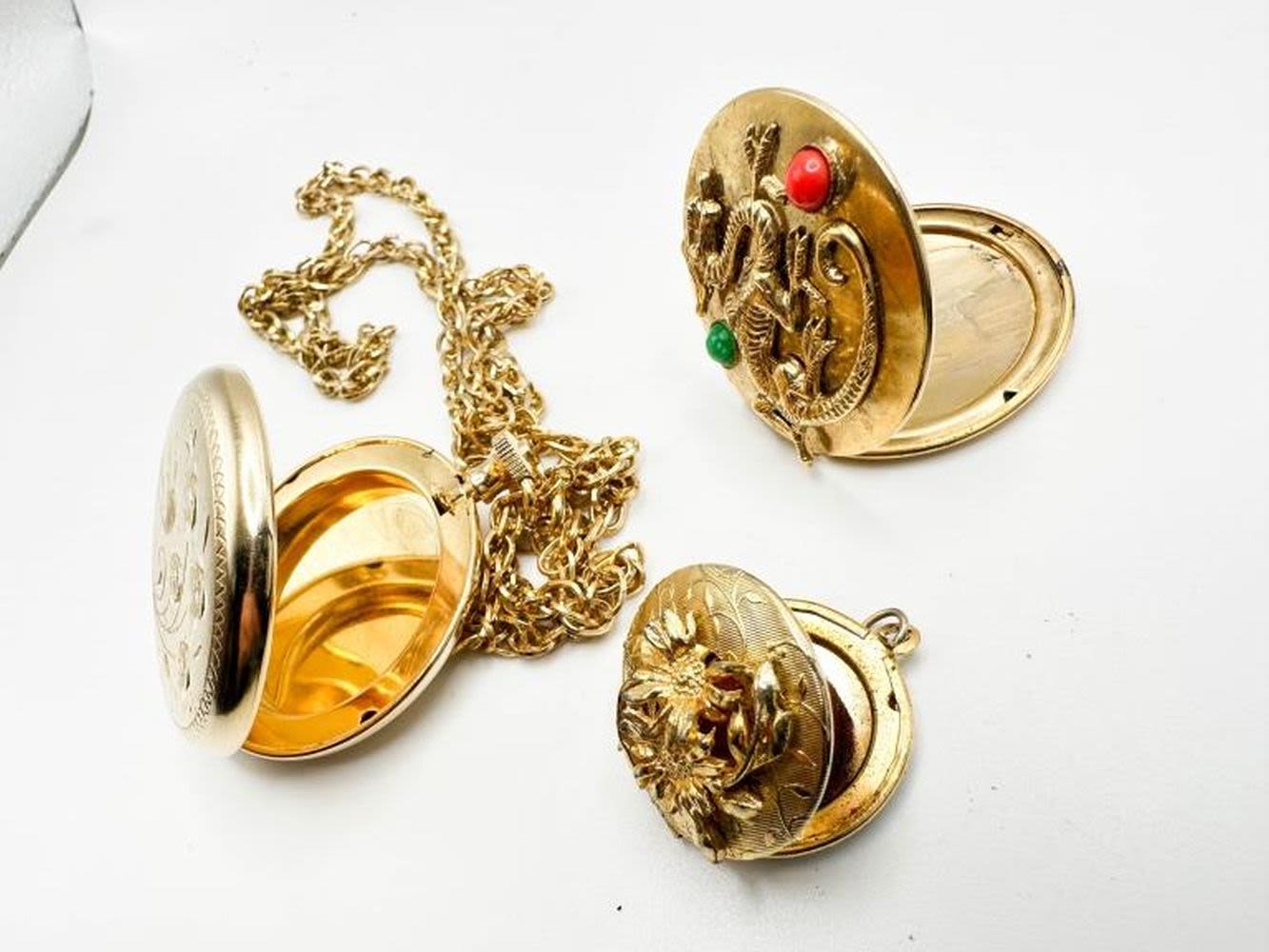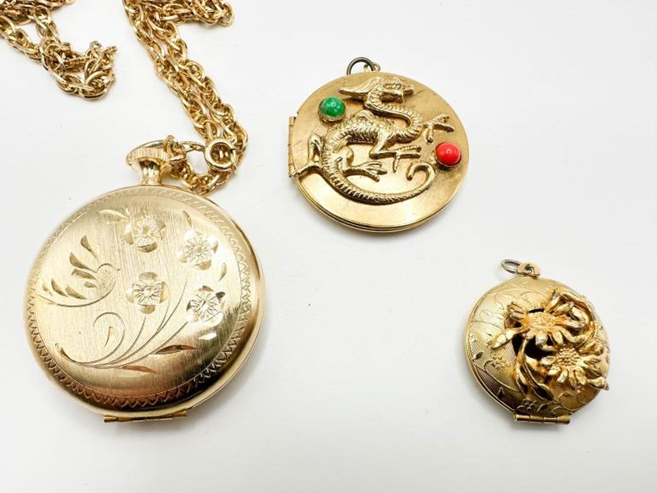 3 VINTAGE LOCKETS , ONE WITH COLOR STONES