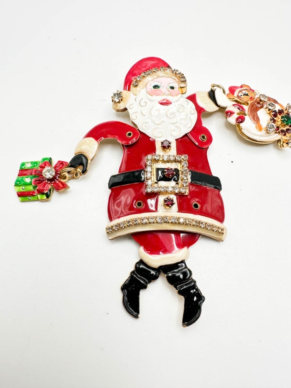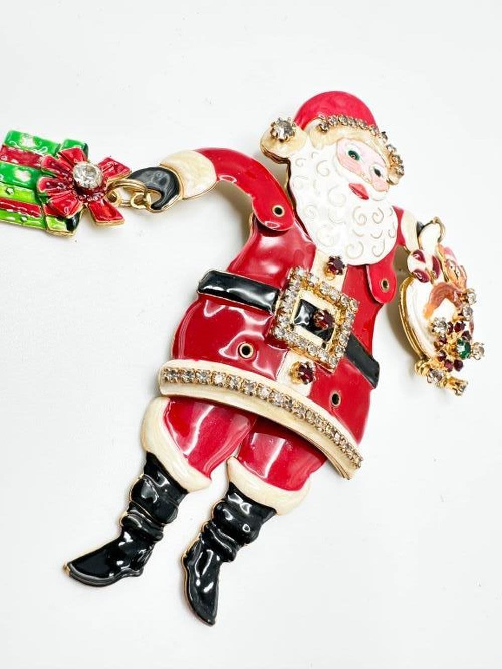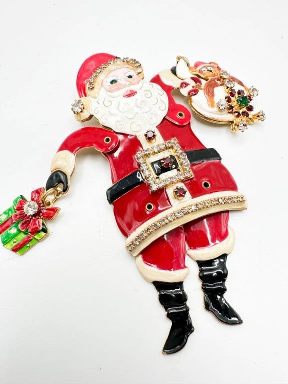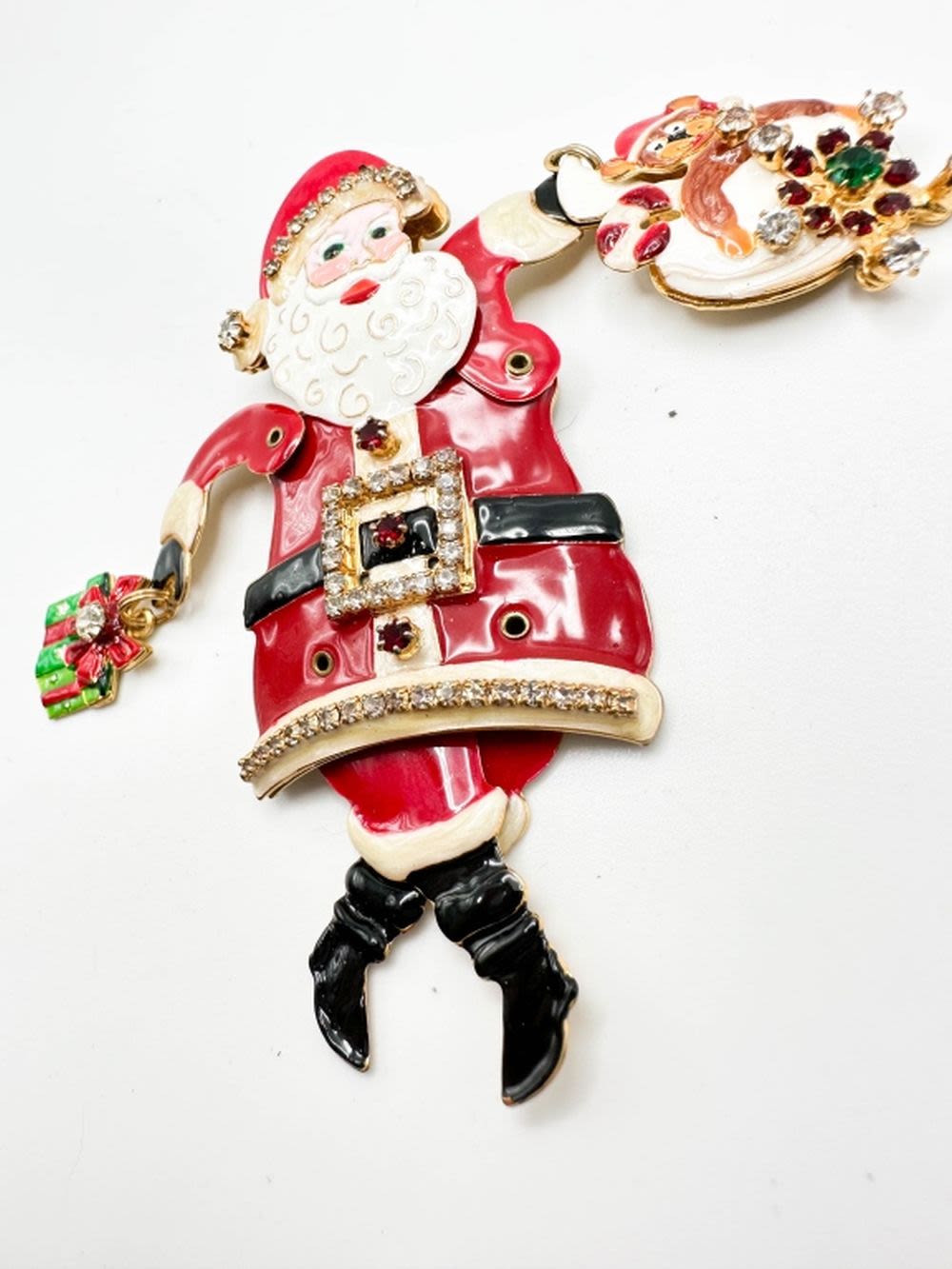 SANTA CLAUS BROOCH WITH STONES AND MOVING PARTS